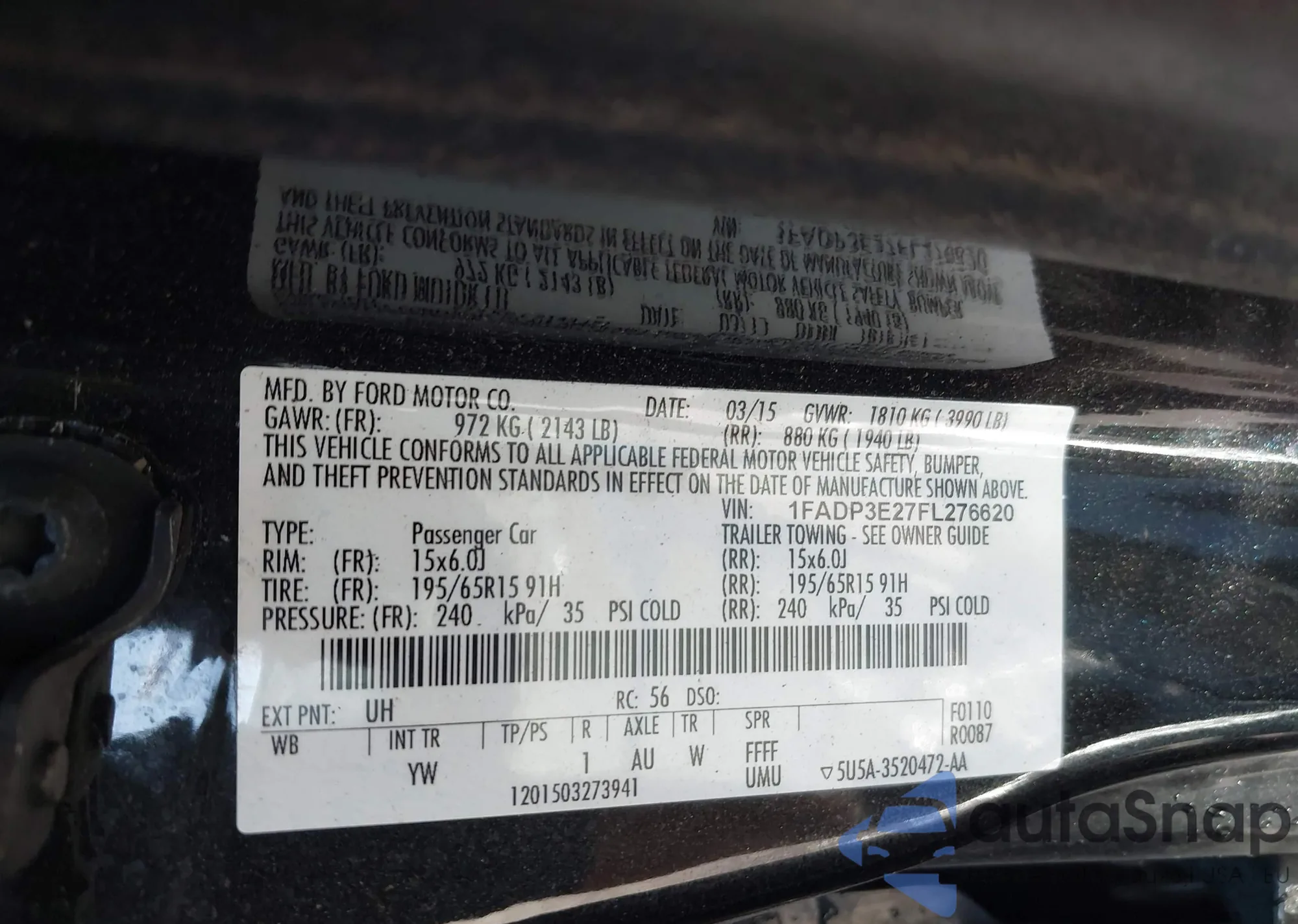 LOT: 43505218 VIN: 1FADP3E27FL276620