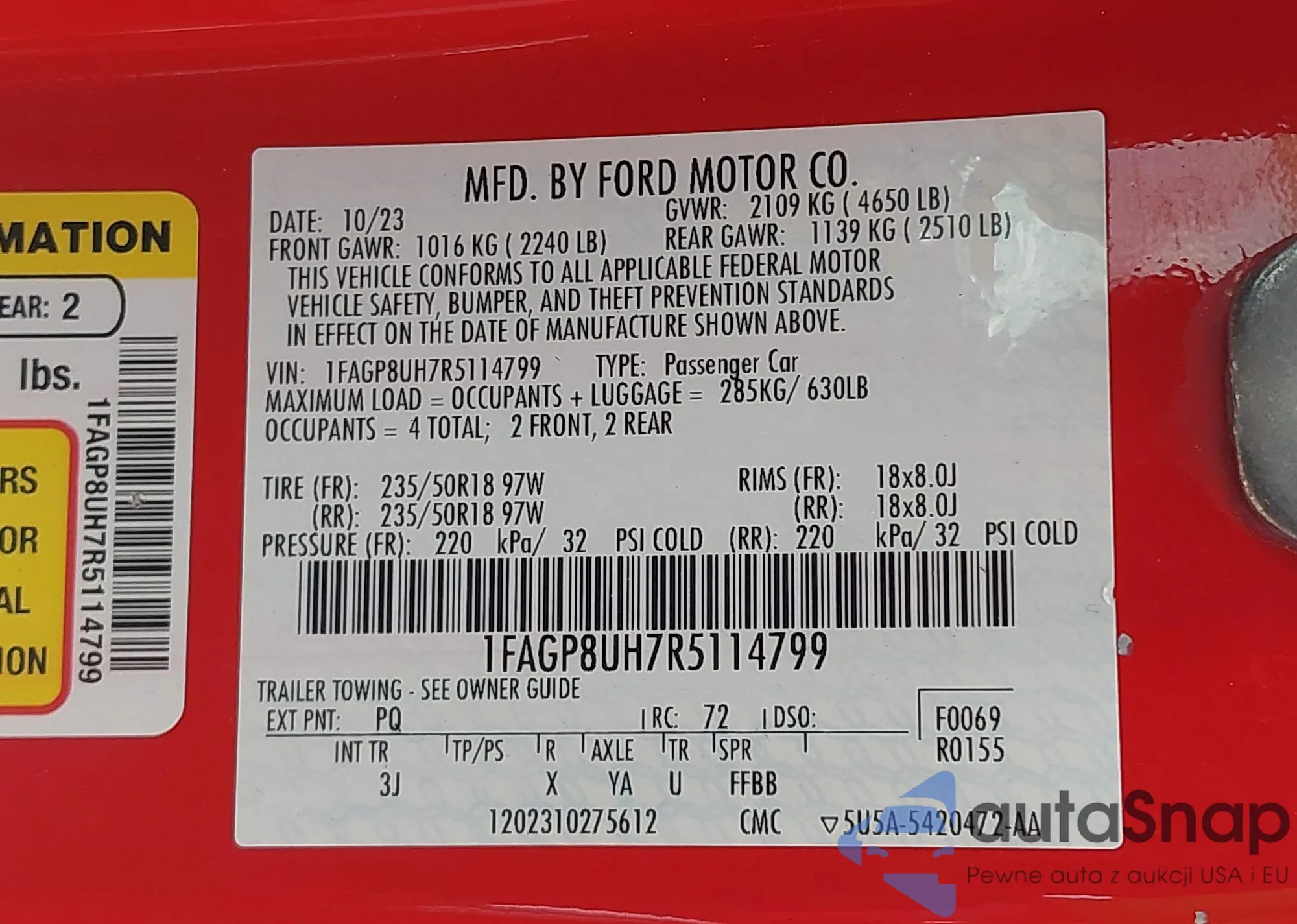 • VIN 1FAGP8UH7R5114799