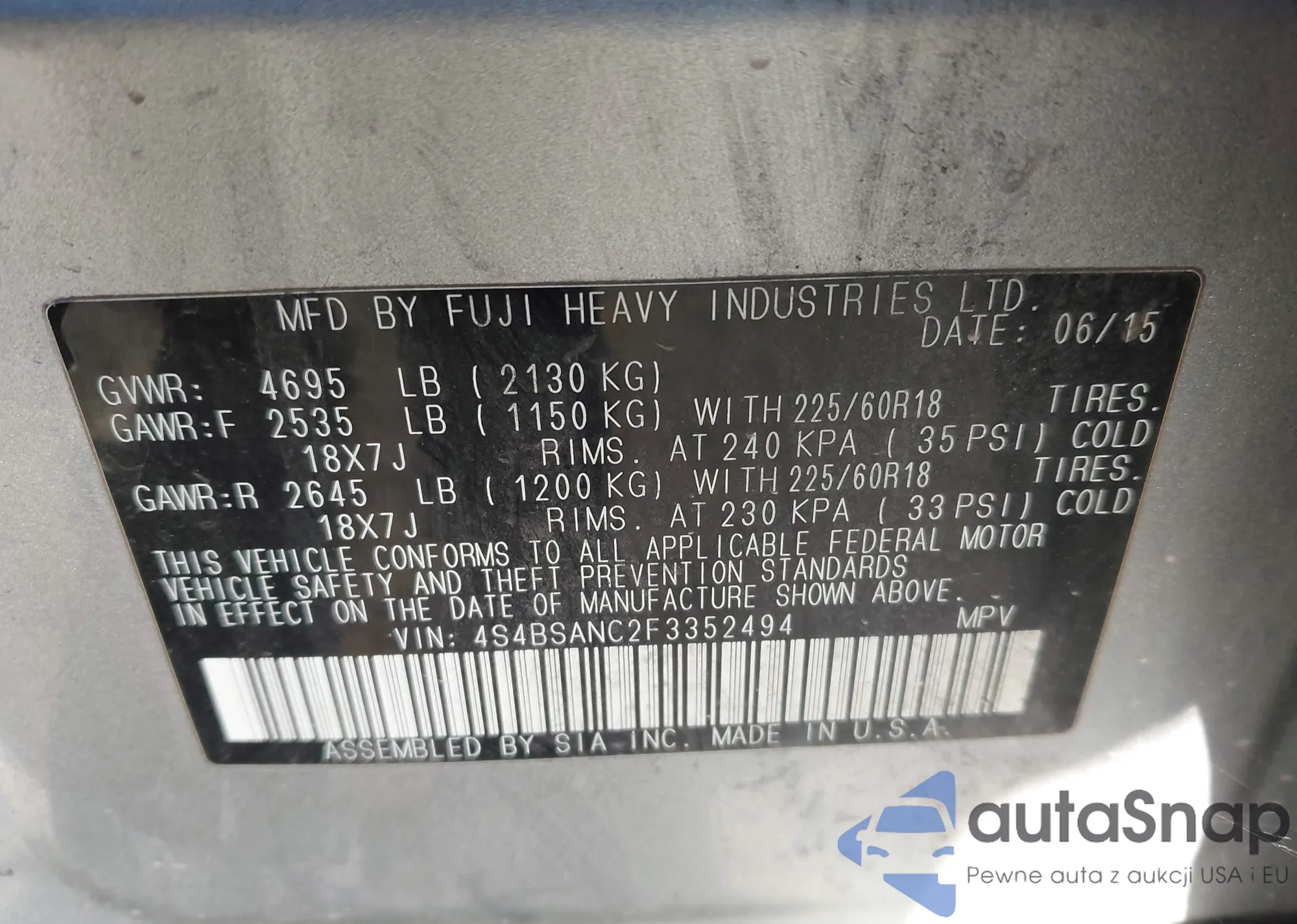 • VIN 4S4BSANC2F3352494