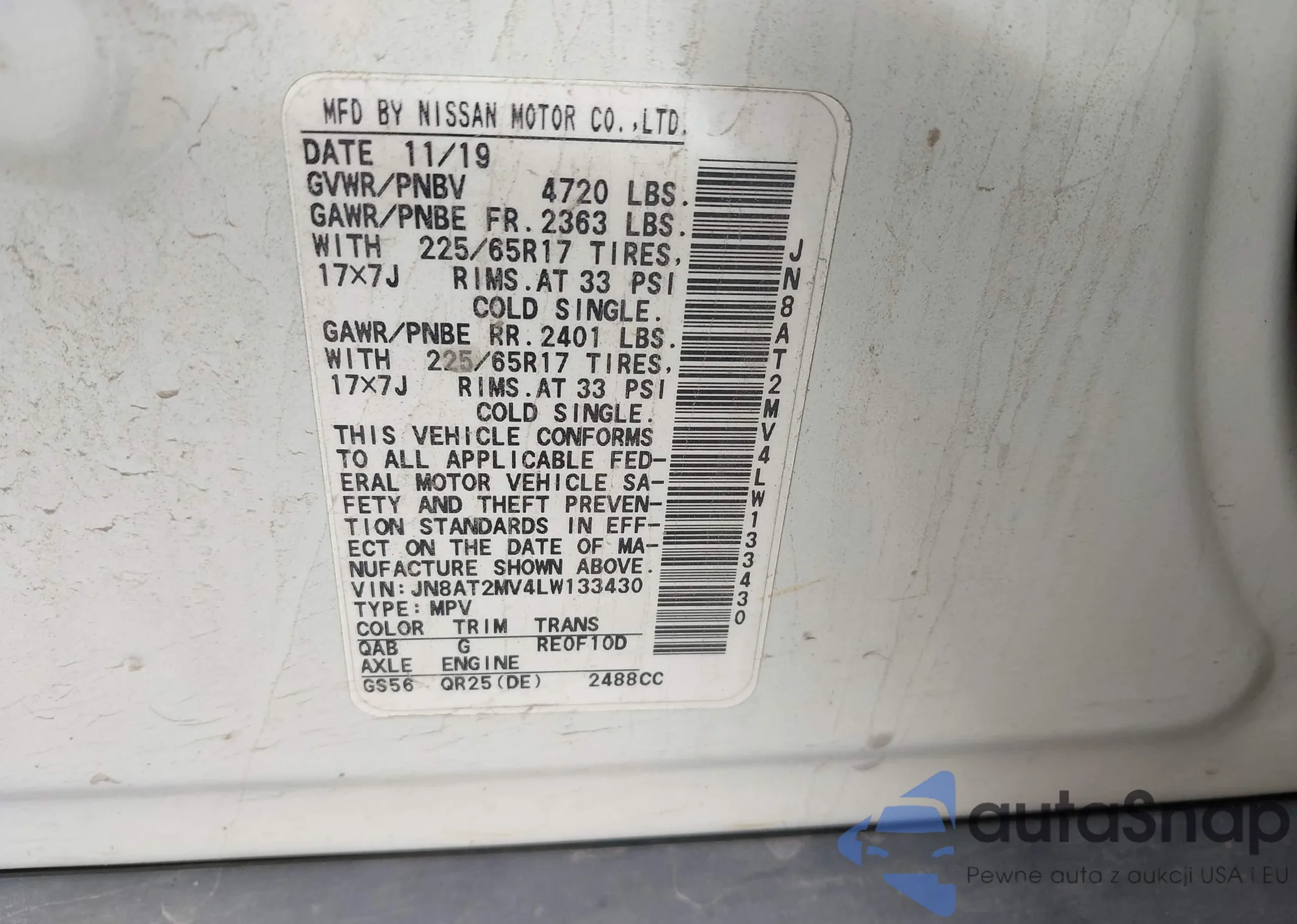 • VIN 5N1AZ2MG7HN115301