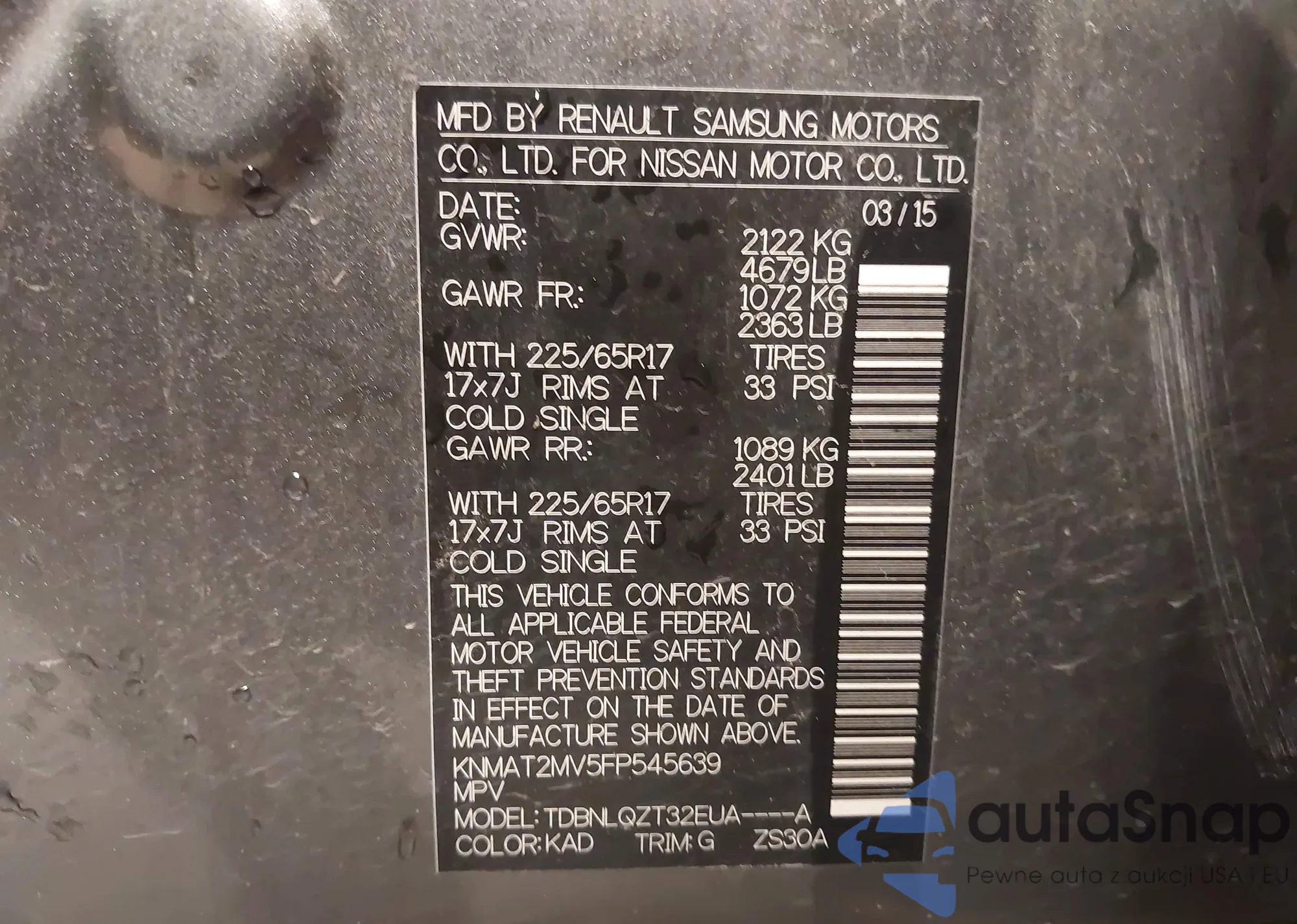 LOT: 43375493 VIN: 4S4BSANC2F3352494