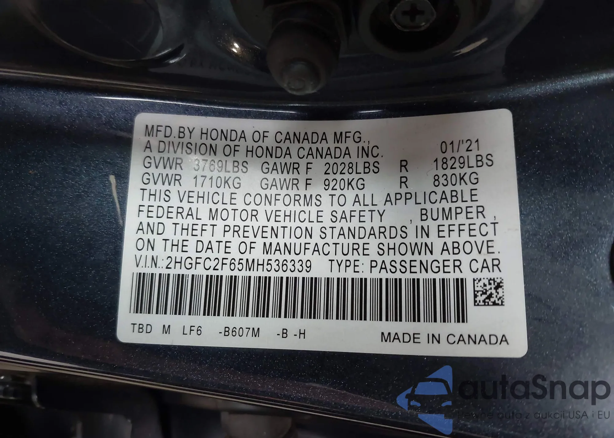 • VIN 2HGFC2F65MH536339