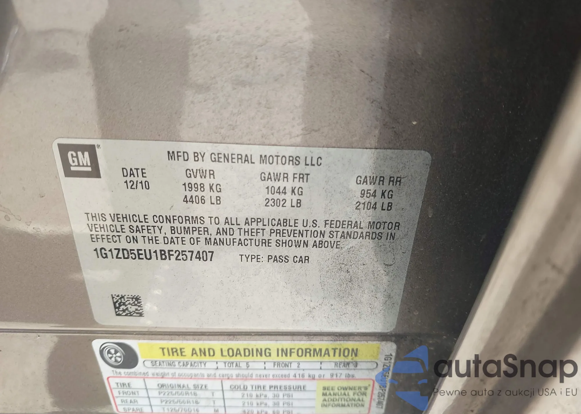 • VIN 1G1ZD5EU1BF257407