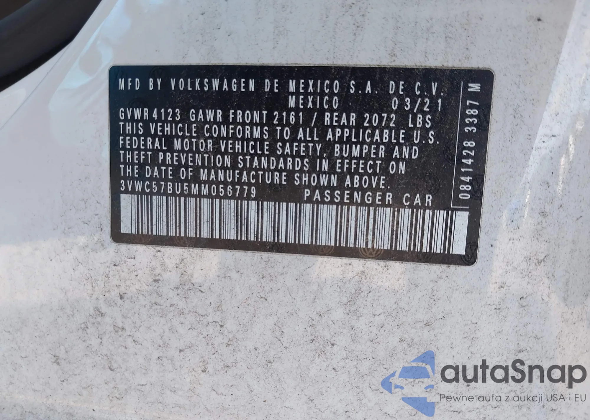 • VIN 3VWC57BU5MM056779