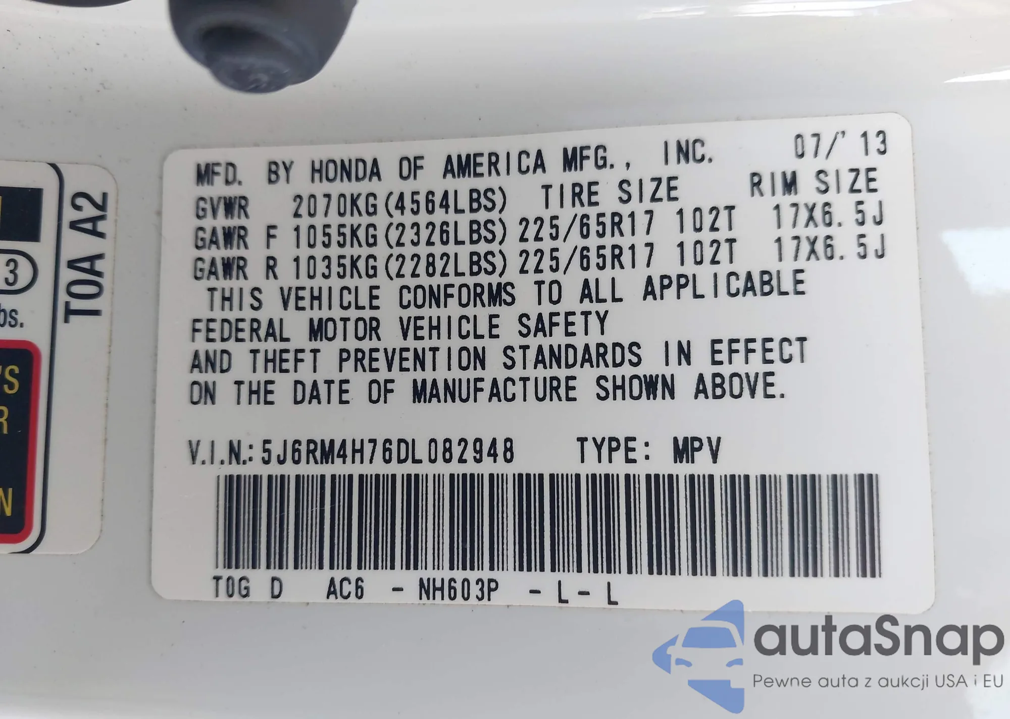 • VIN 19XFL1H87PE014075