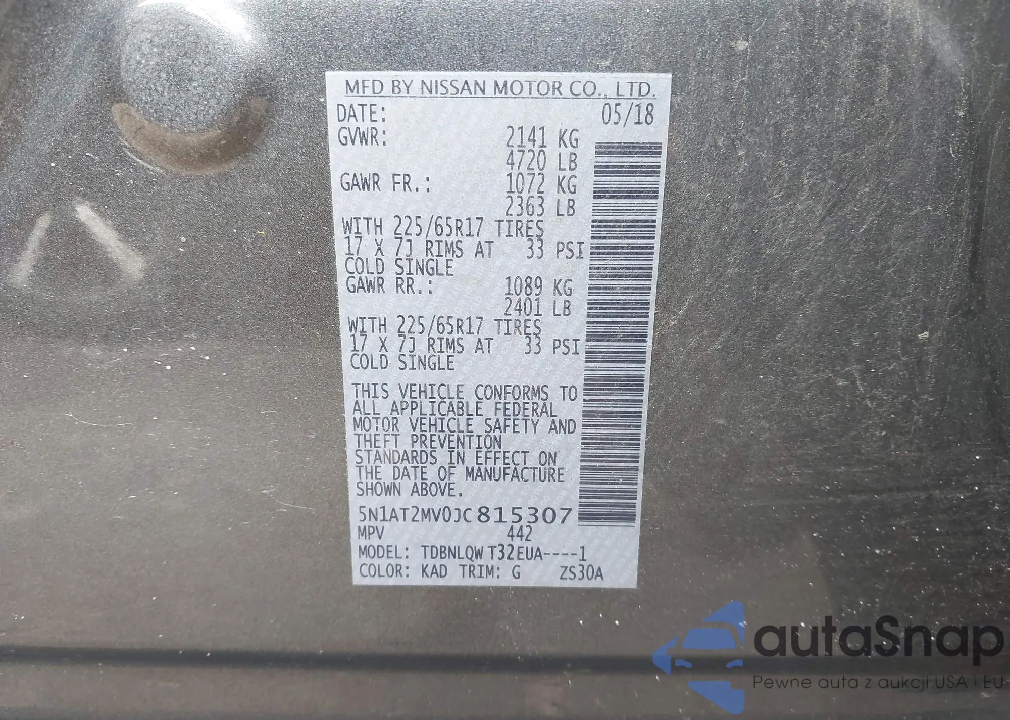 LOT: 43558718 VIN: 5N1AT2MV0JC815307