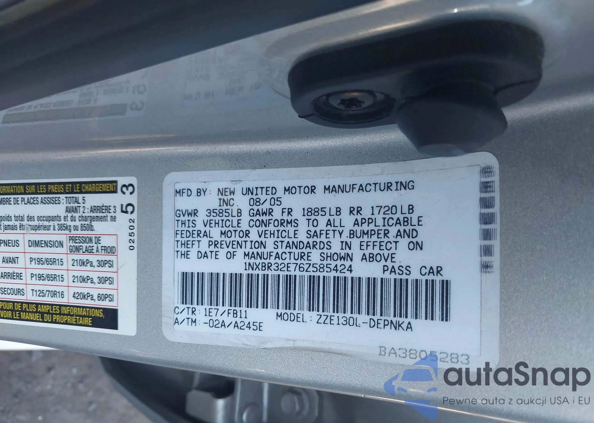 • VIN 1NXBR32E76Z585424