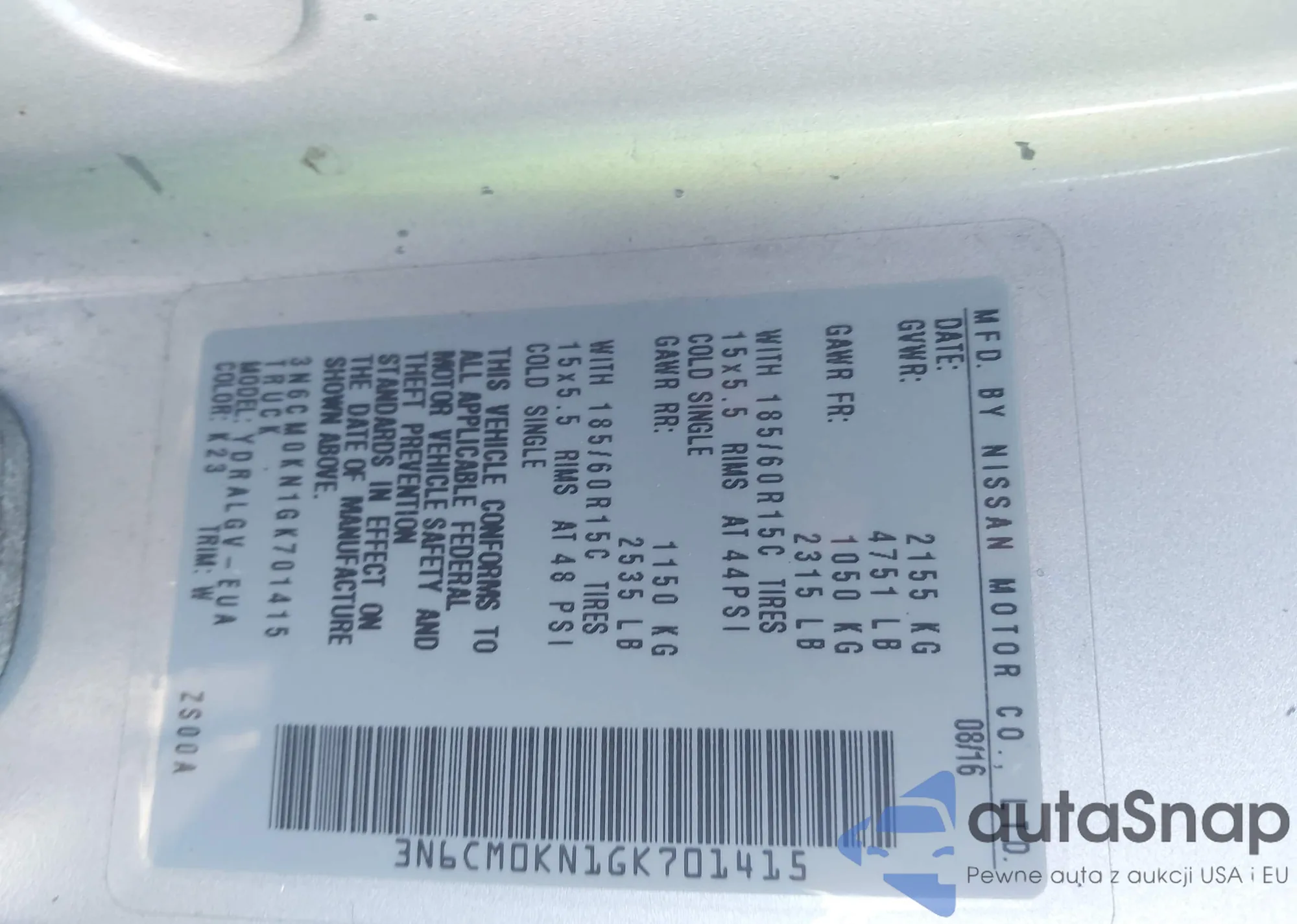 • VIN 3N6CM0KN1GK701415