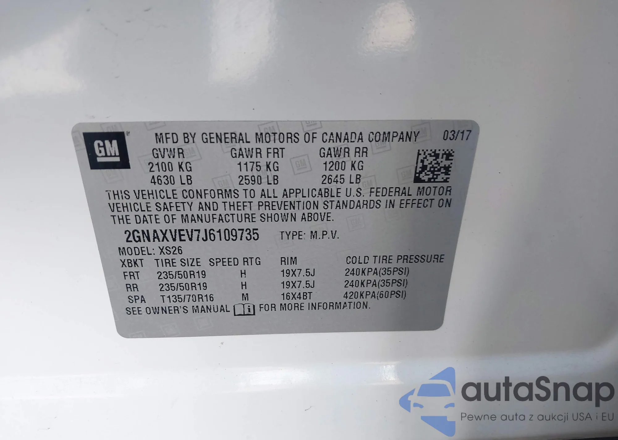 • VIN 2GNAXVEV7J6109735