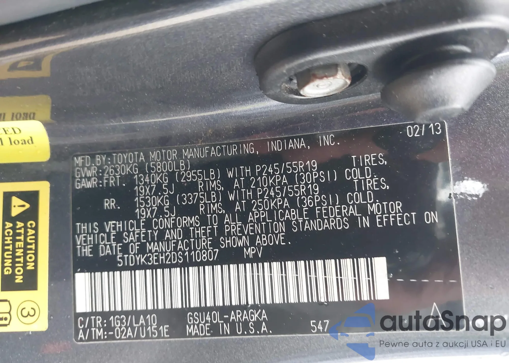 • VIN 5TDYK3EH2DS110807