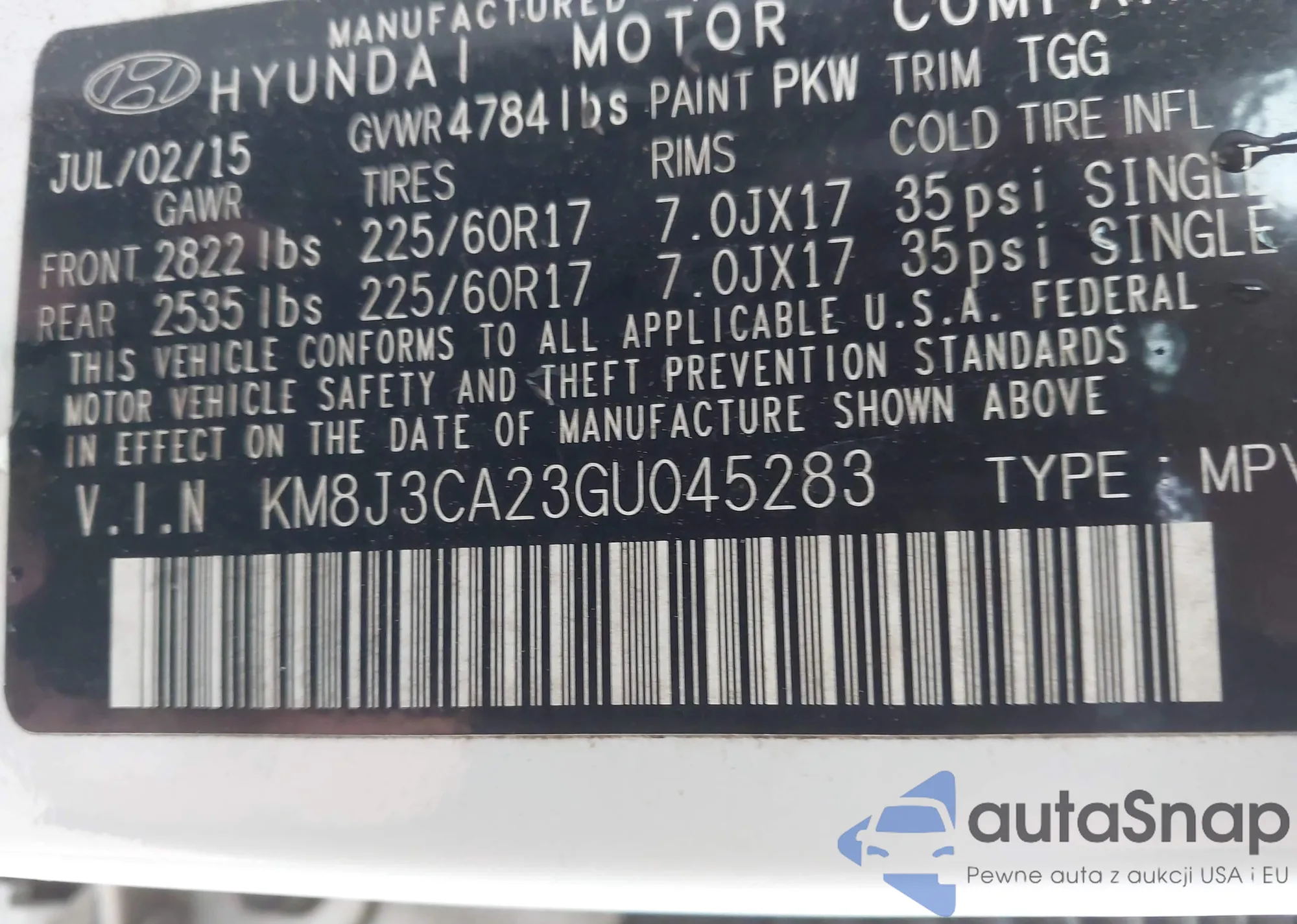 • VIN KM8J3CA23GU045283
