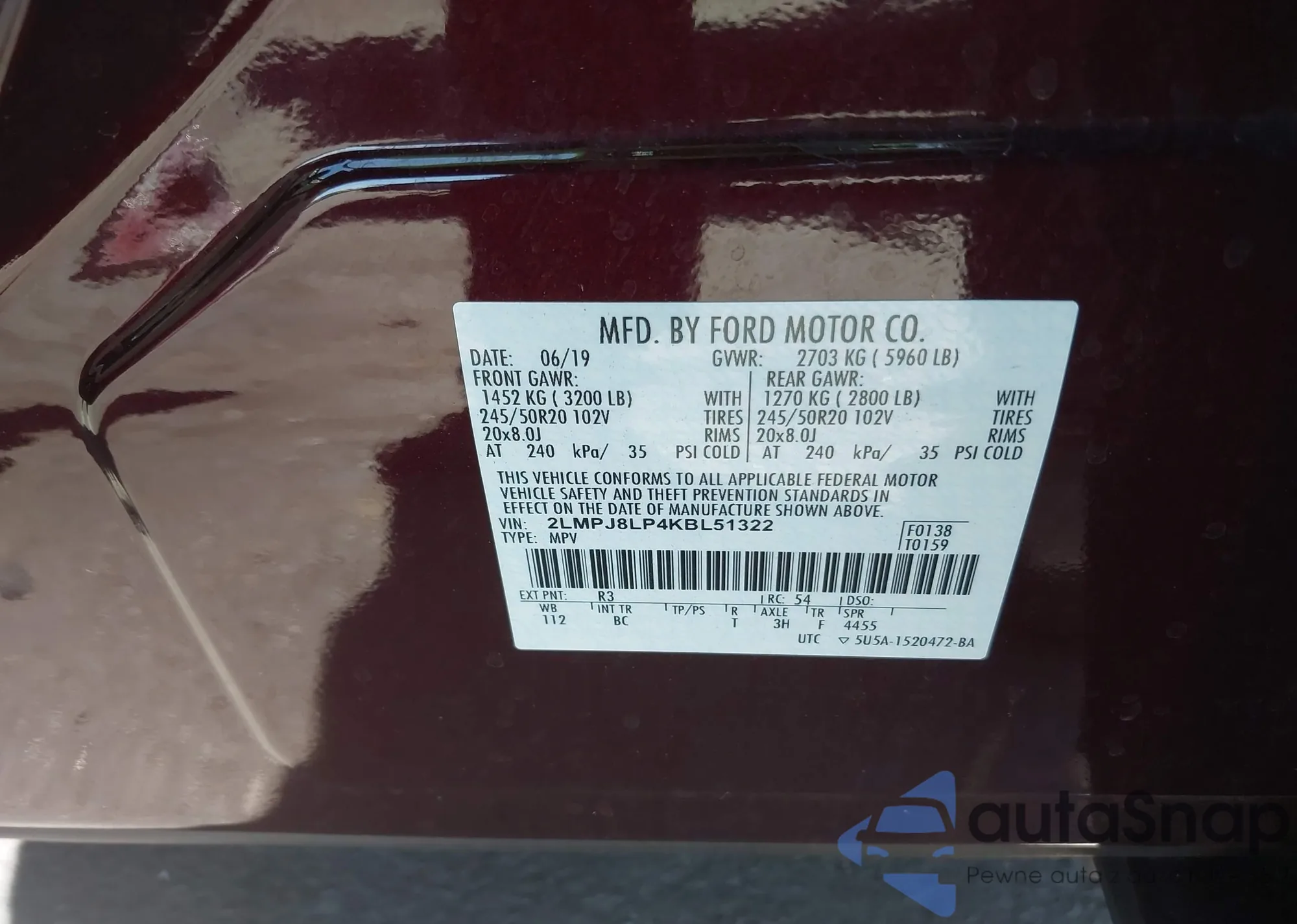 • VIN 2LMPJ8LP4KBL51322