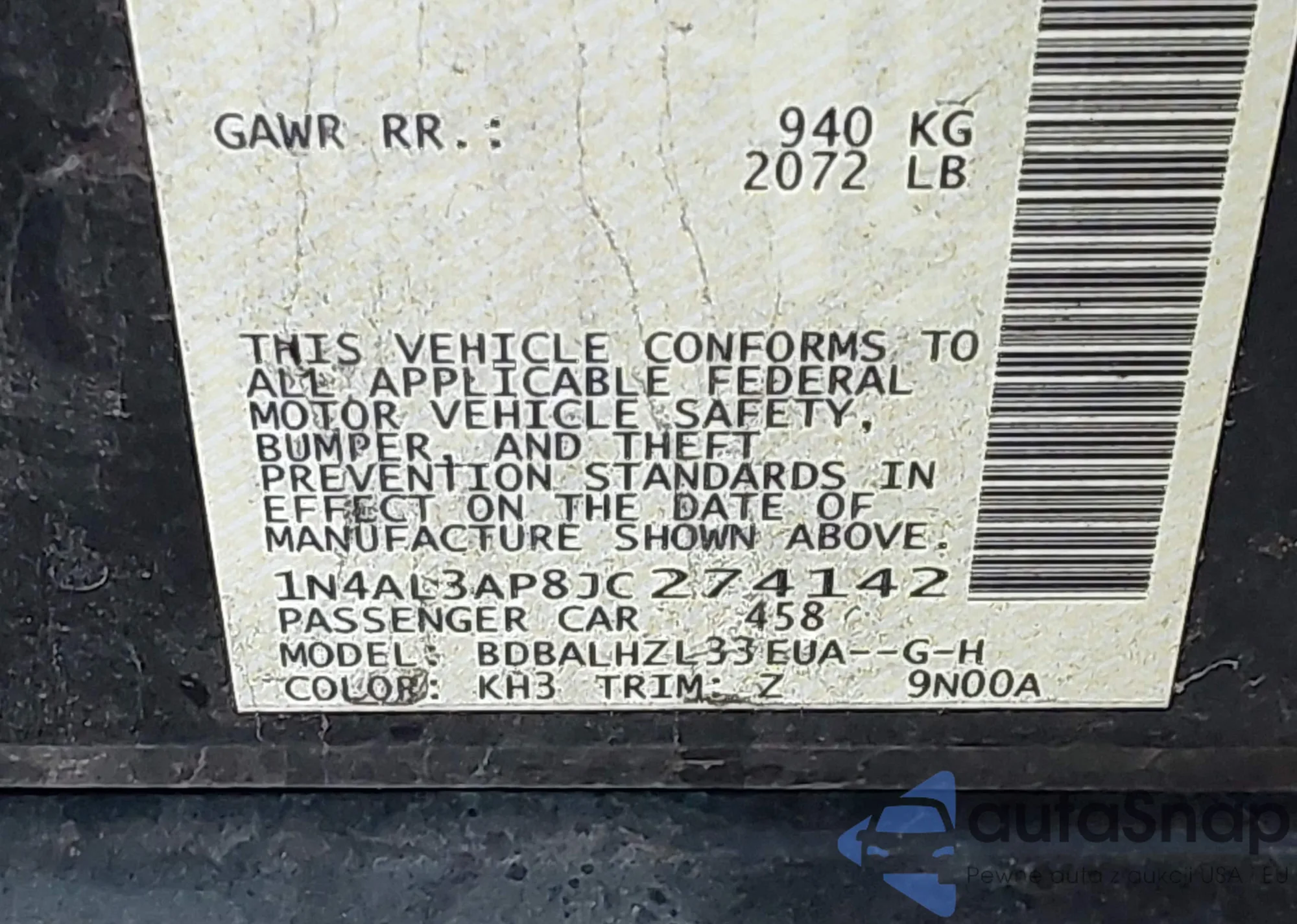 LOT: 43229731 VIN: JN1AZ4EHXJM571394