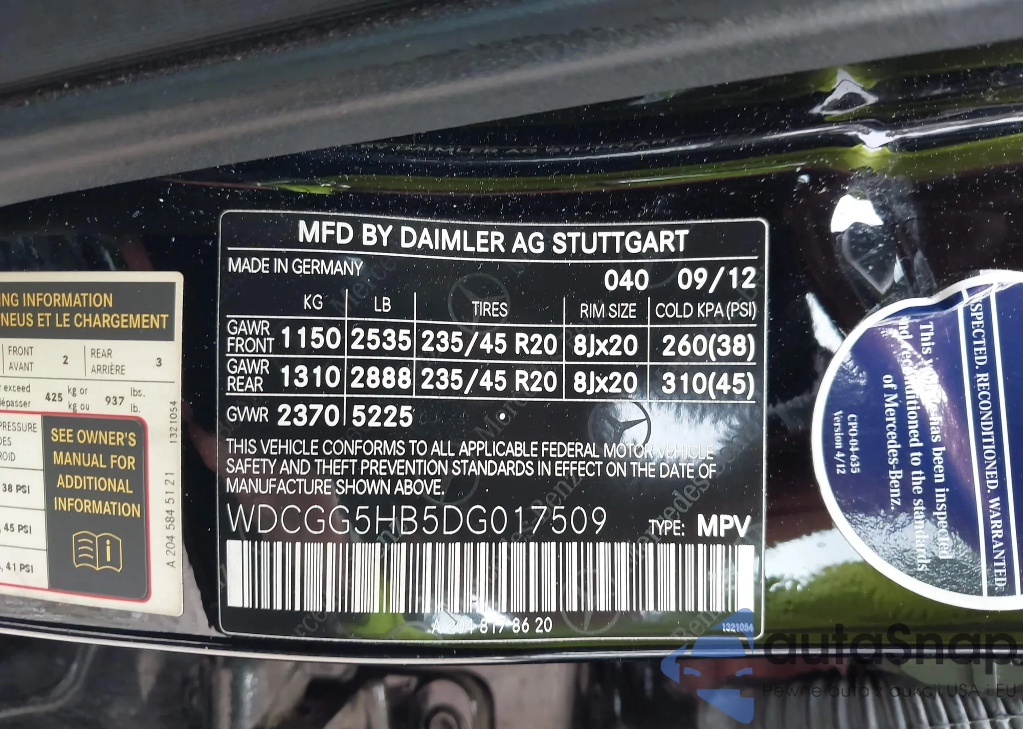• VIN WDCGG5HB5DG017509