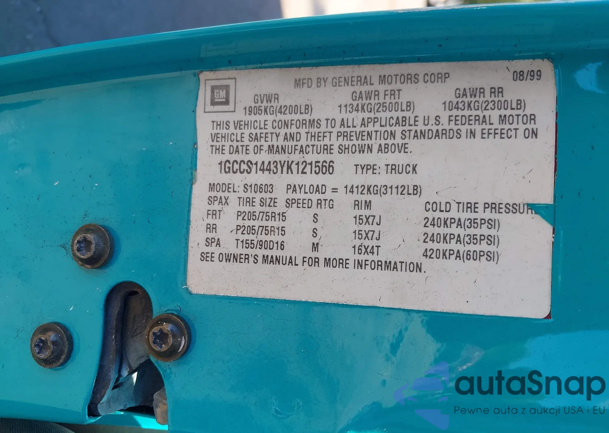 LOT: 43374561 VIN: 1GCCS1443YK121566