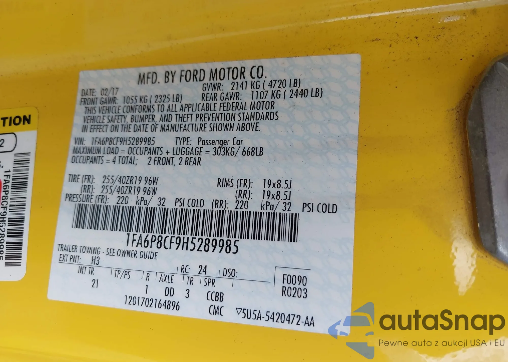 LOT: 42953008 VIN: 1FA6P8CF9H5289985