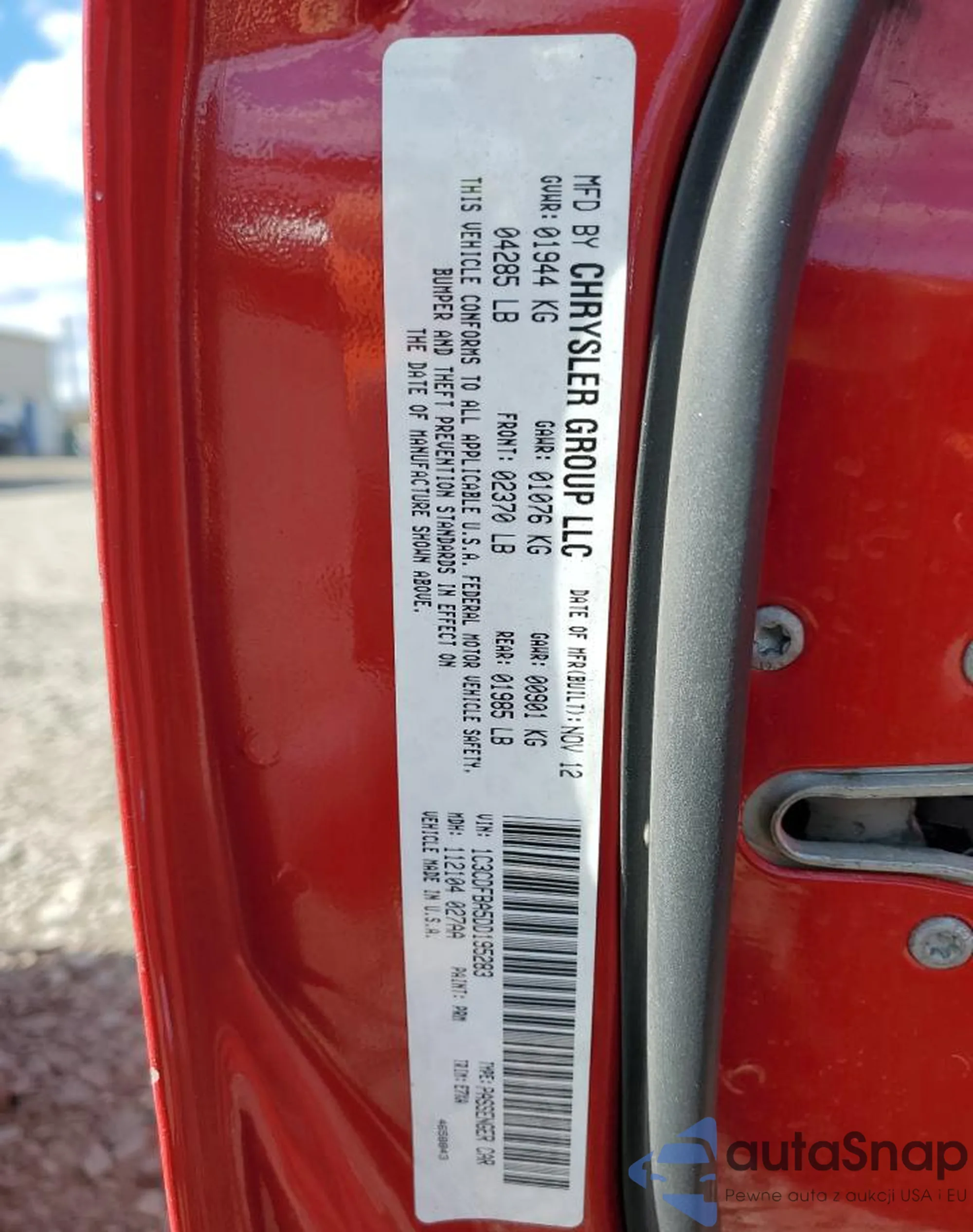 LOT: 91496005 VIN: 1C3CDFBA5DD195283