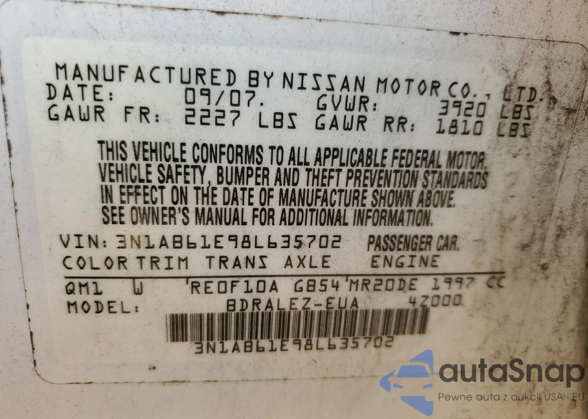 • VIN 4T1BK3DB9AU357764