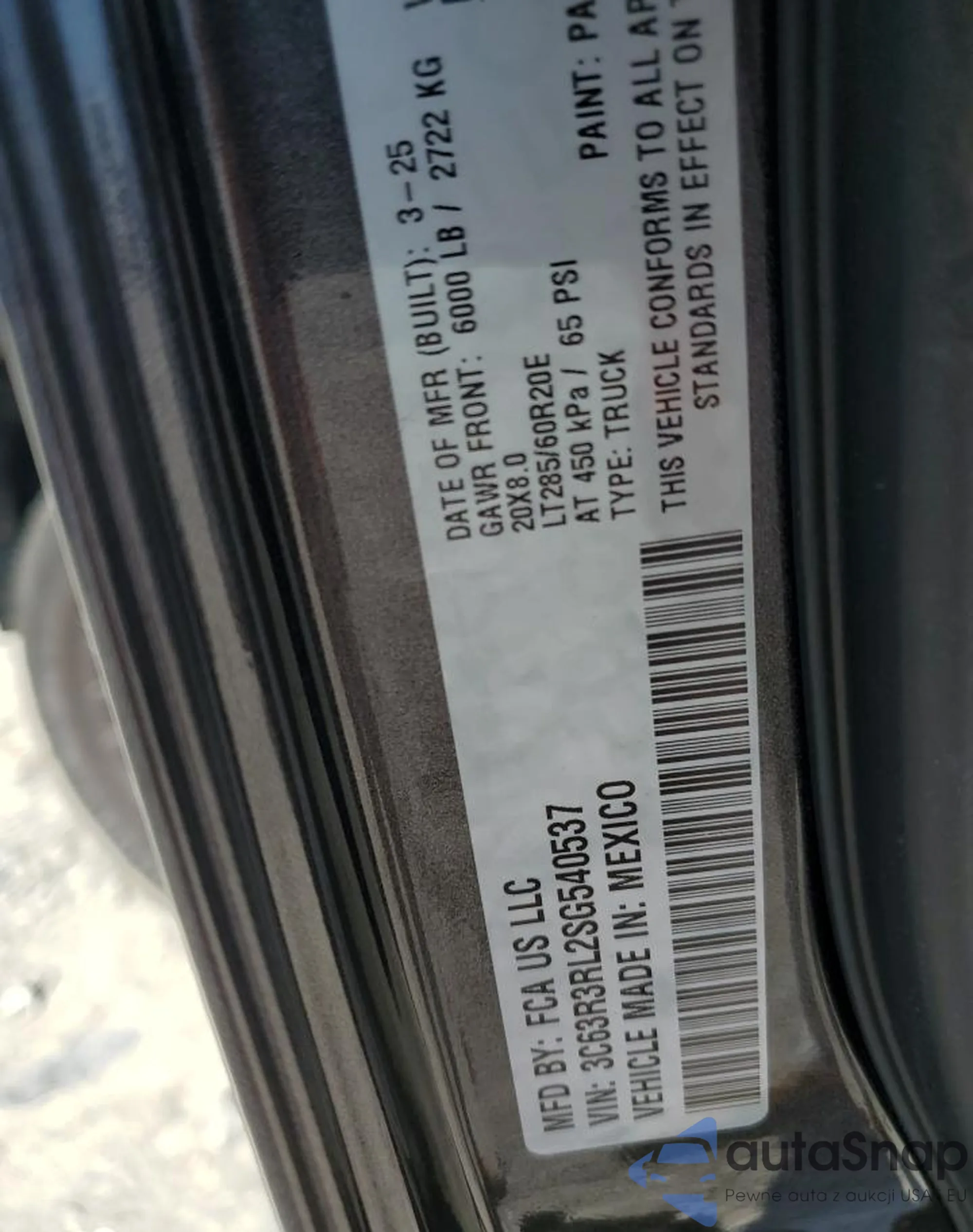 LOT: 84724415 VIN: 3C63R3RL2SG540537