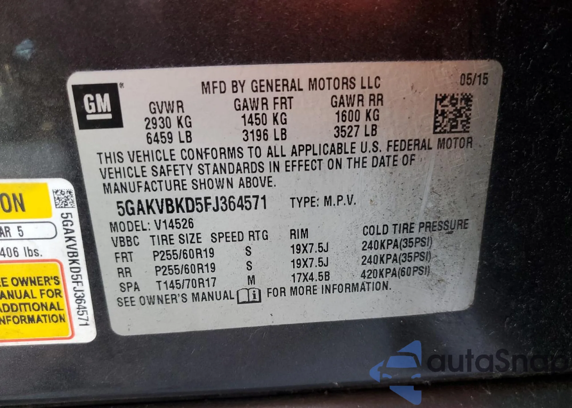 • VIN 5GAKVBKD5FJ364571