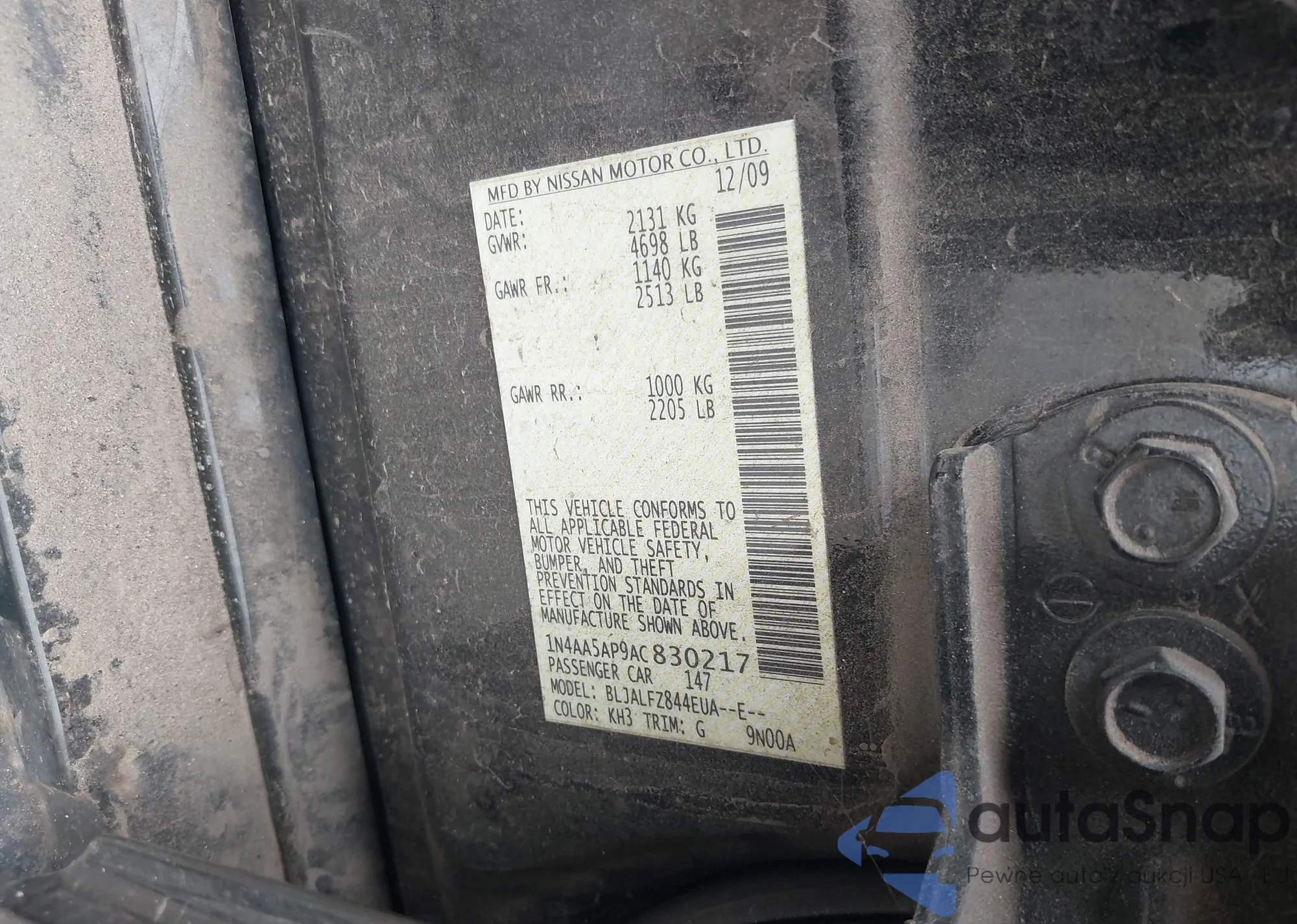 • VIN 1N4AA5AP9AC830217