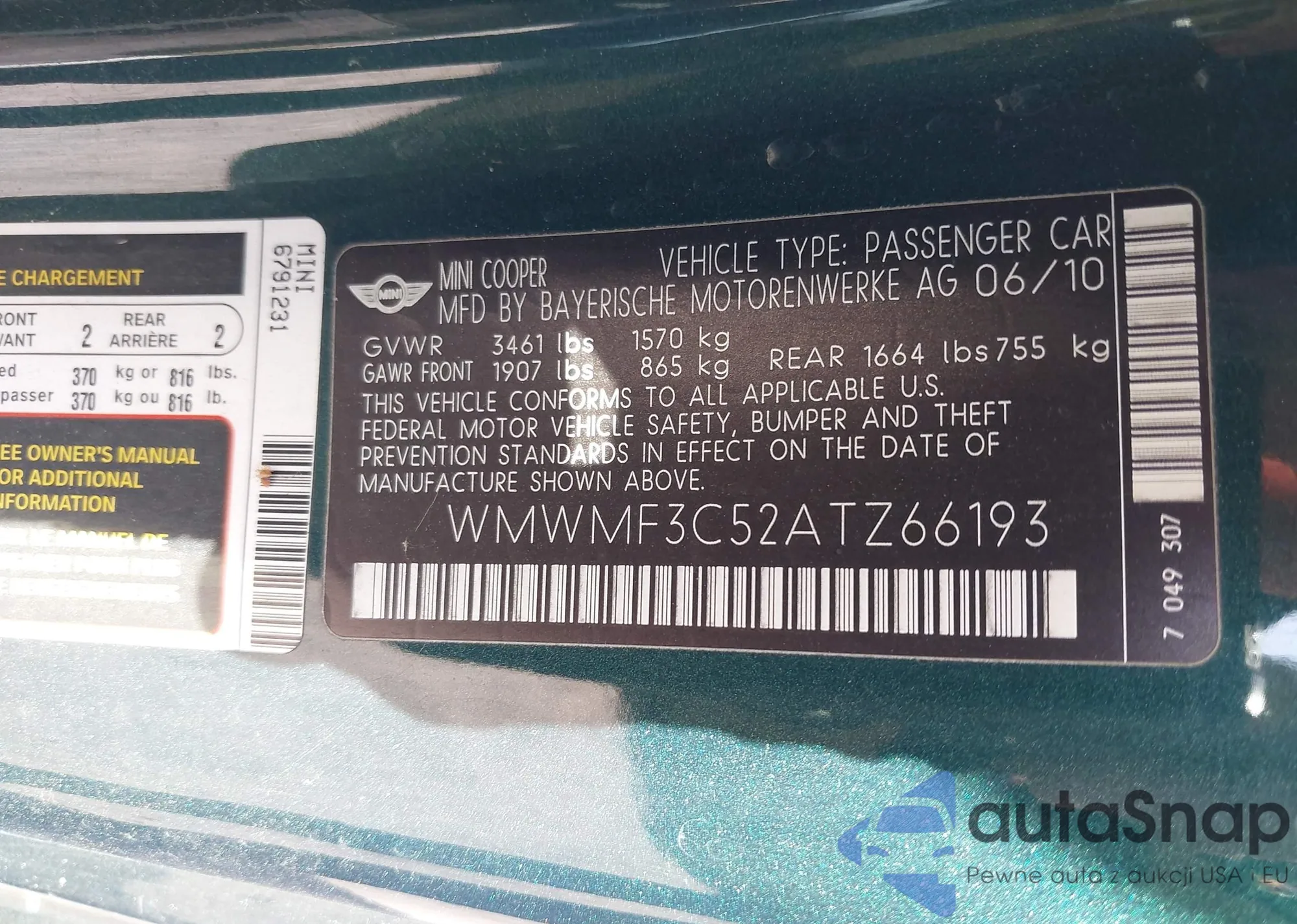 • VIN WMWMF3C52ATZ66193