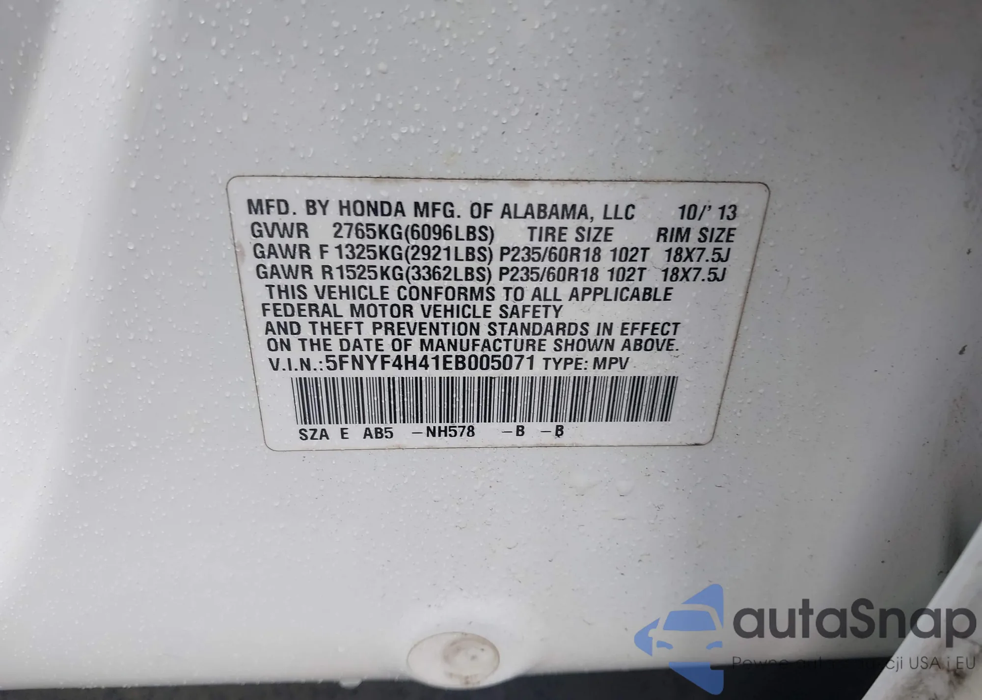 • VIN 1HGCR2F39FA146675