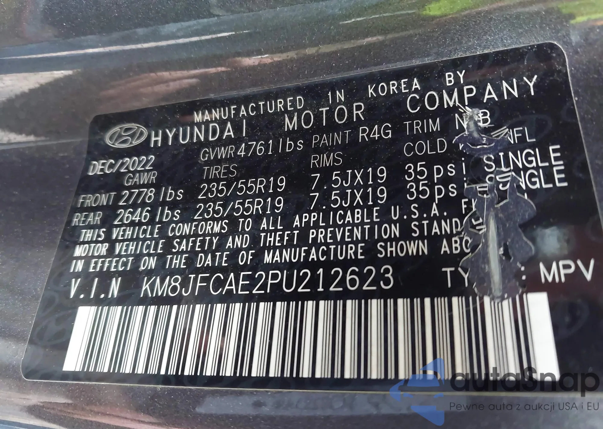 LOT: 43440284 VIN: KM8JFCAE2PU212623
