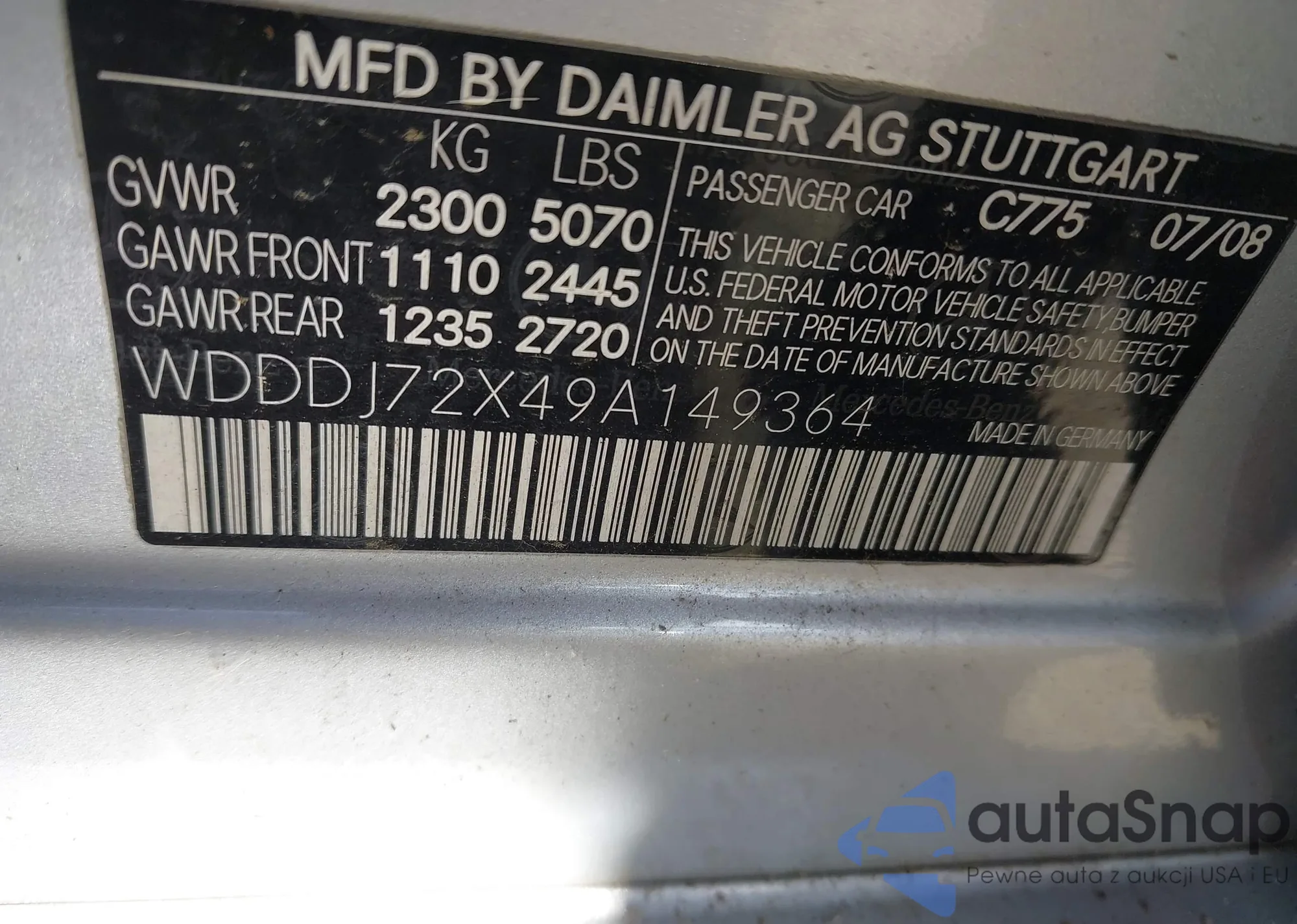LOT: 43468966 VIN: WDDDJ72X49A149364