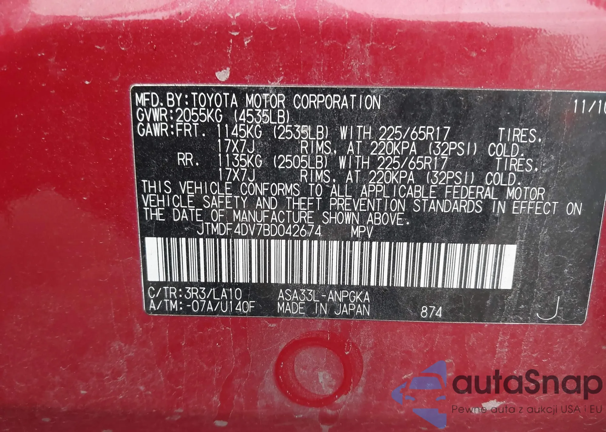 • VIN JTMDF4DV7BD042674