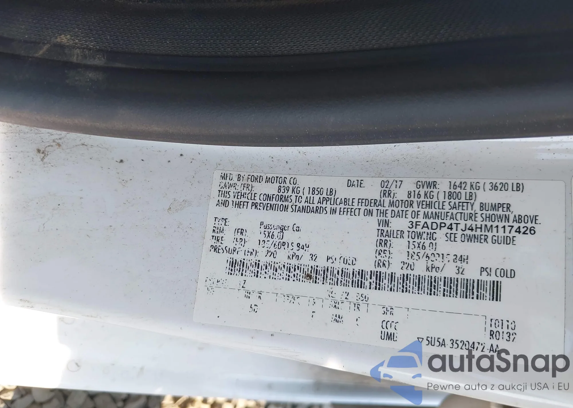 LOT: 43089182 VIN: 3FADP4TJ4HM117426