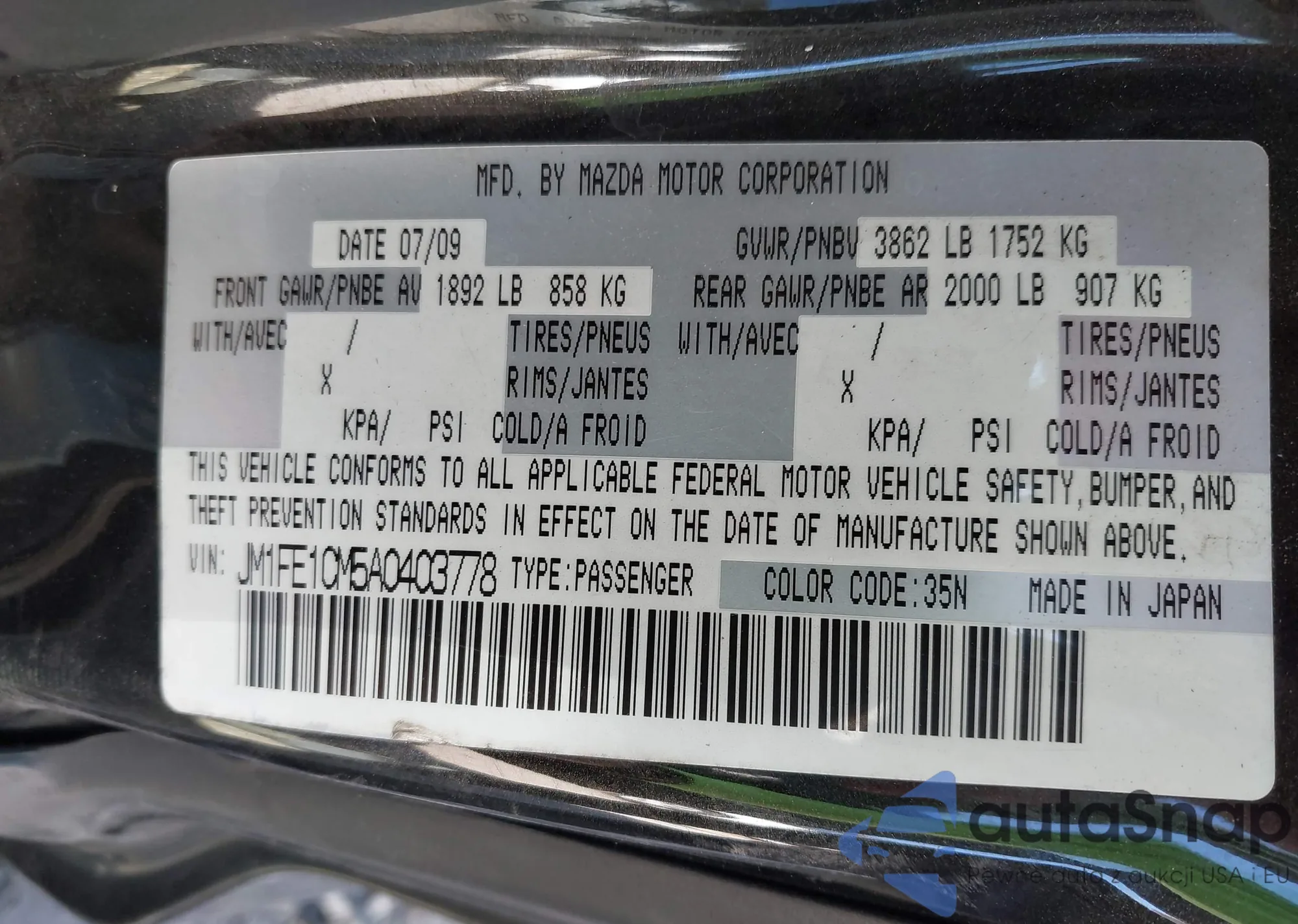 • VIN JTMZF32VX95011488