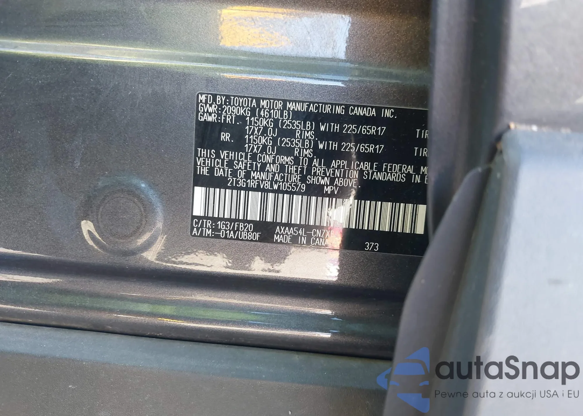 LOT: 43612091 VIN: 2T3G1RFV8LW105579
