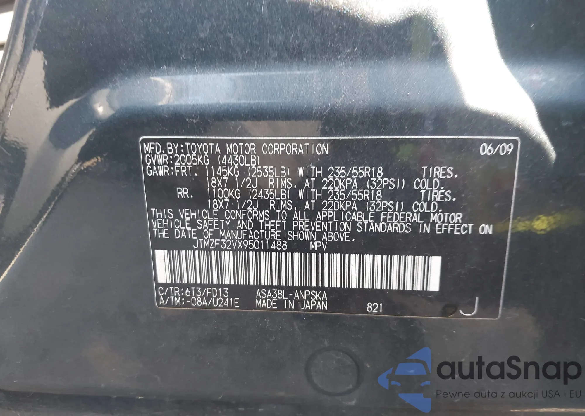 LOT: 43615856 VIN: JTMZF32VX95011488