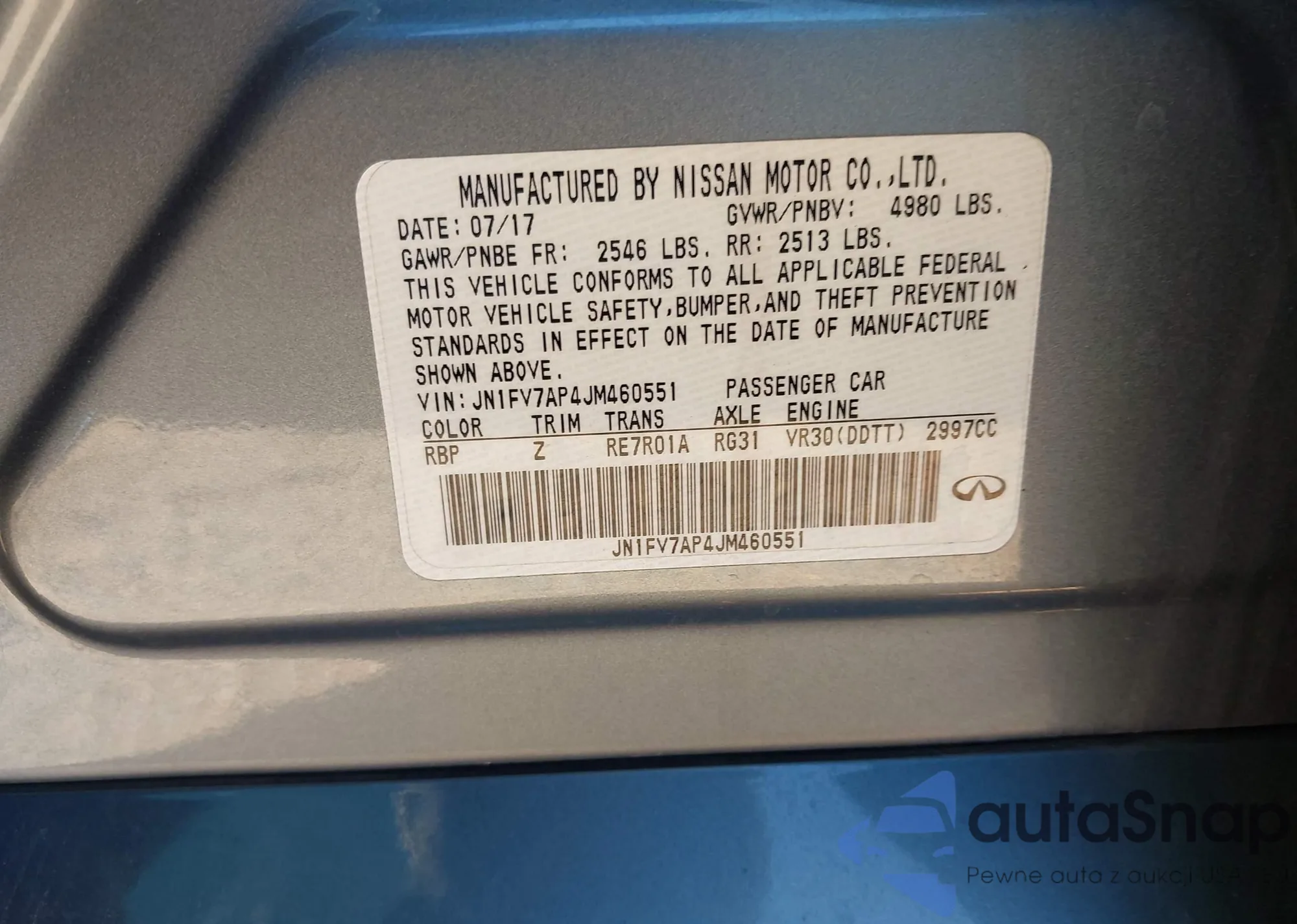 LOT: 43170927 VIN: WAUABAF46PN016700