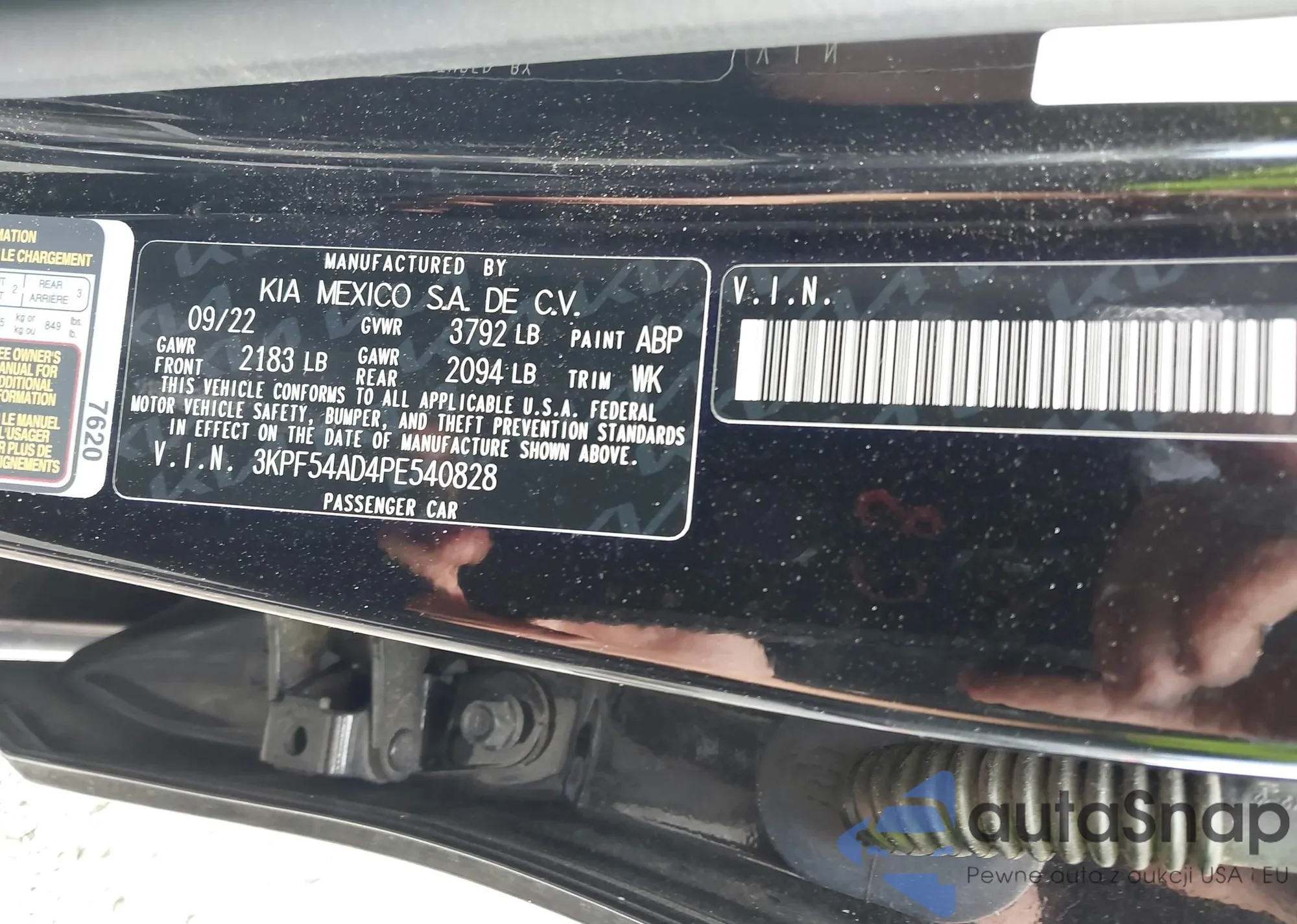 LOT: 43195463 VIN: 3KPF54AD4PE540828