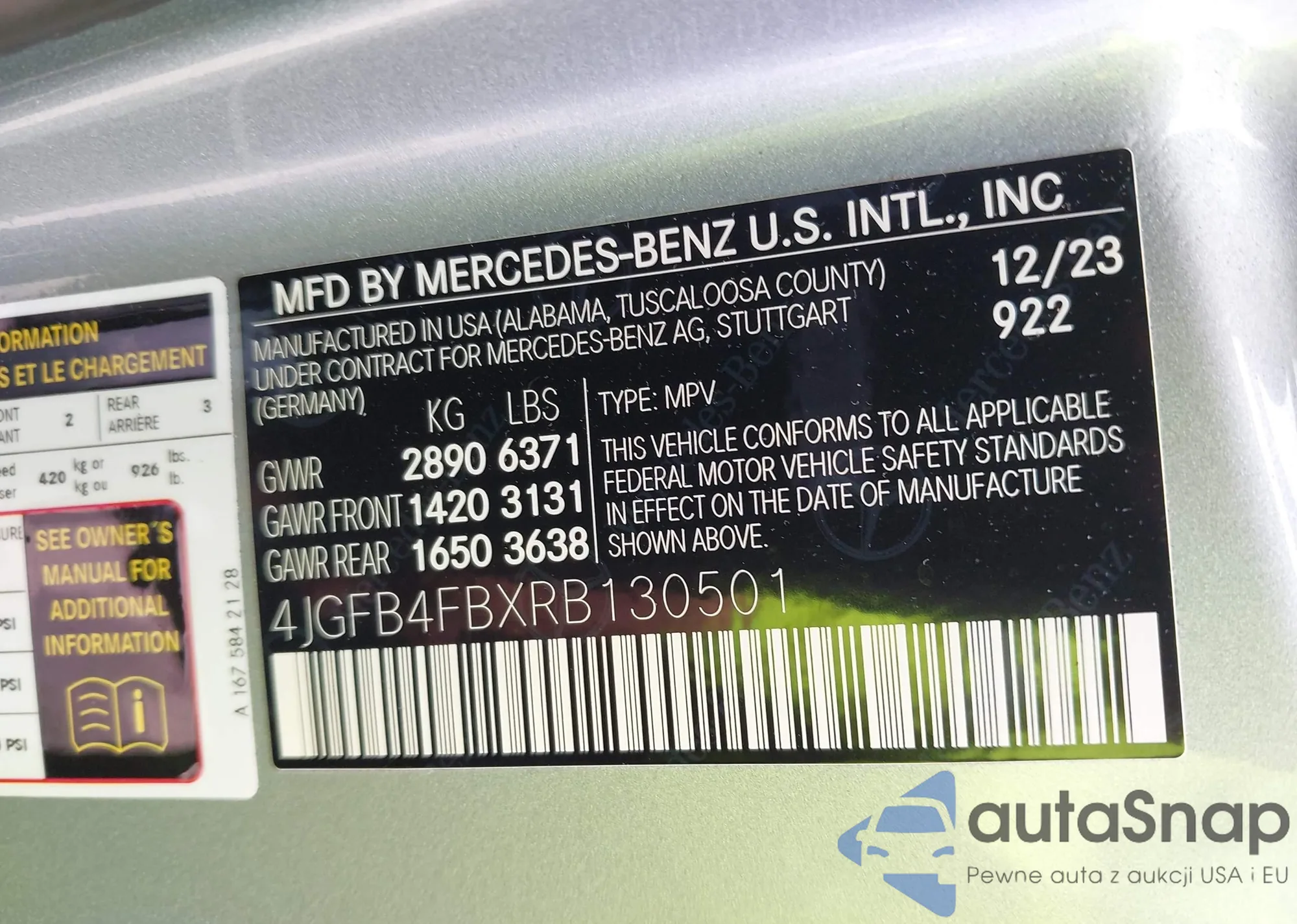 • VIN 4JGFB4FBXRB130501