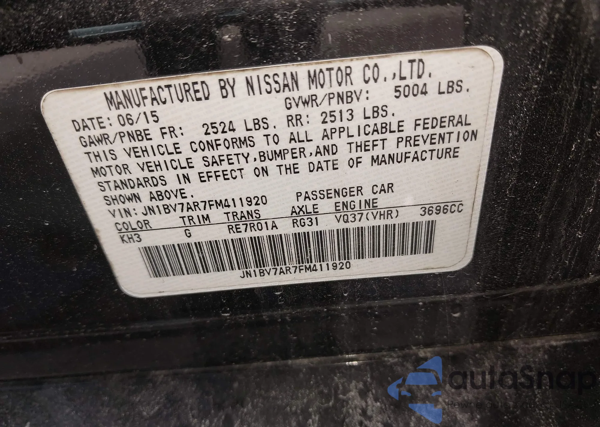 LOT: 43048125 VIN: JN1BV7AR7FM411920