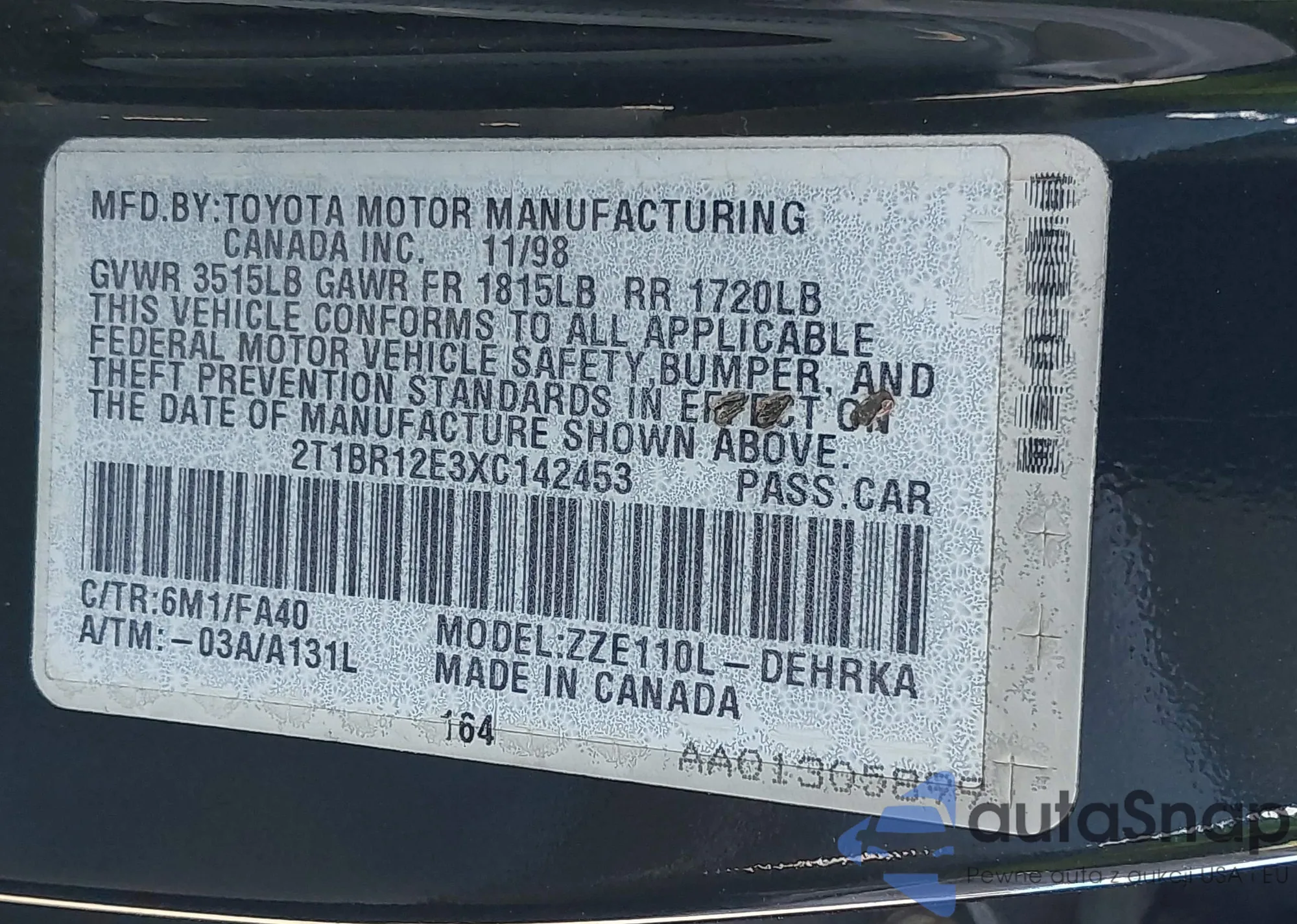 • VIN 4T1B11HK6JU534918