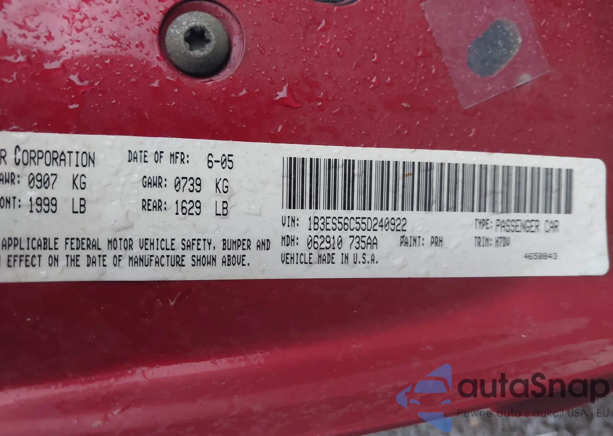 LOT: 43519213 VIN: 1B3ES56C55D240922