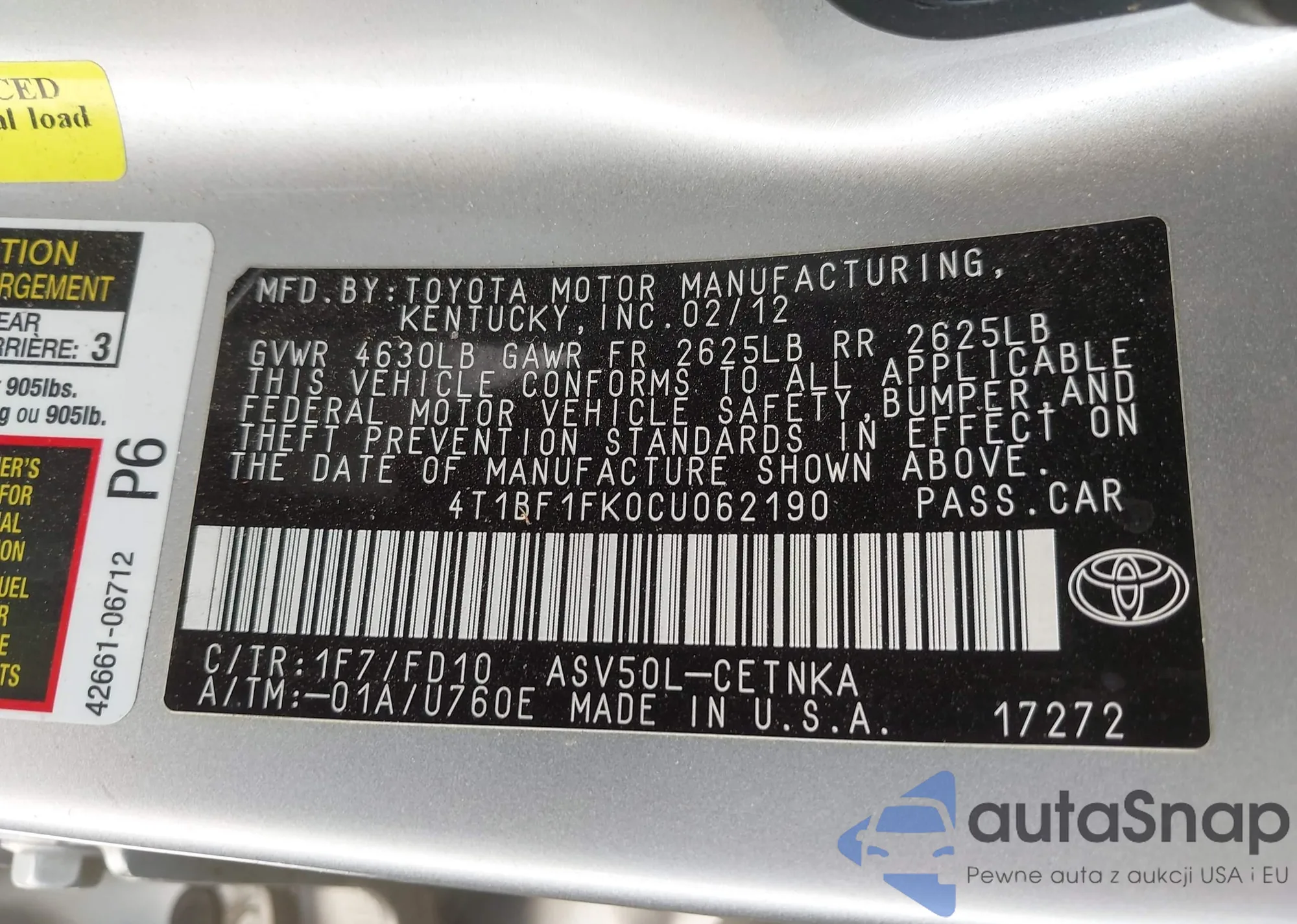 LOT: 43294167 VIN: 4T3ZF13C8WU049551