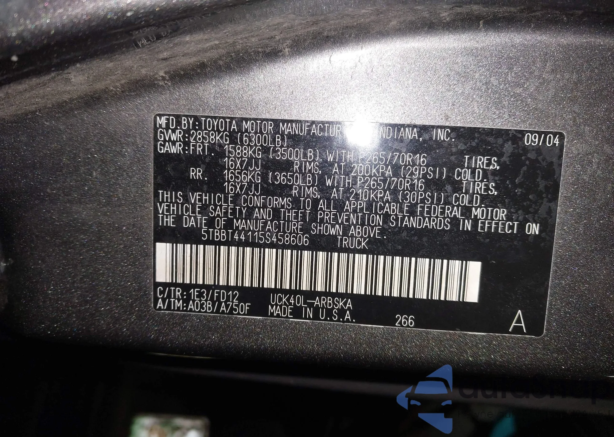 LOT: 43292218 VIN: 5TBBT44115S458606