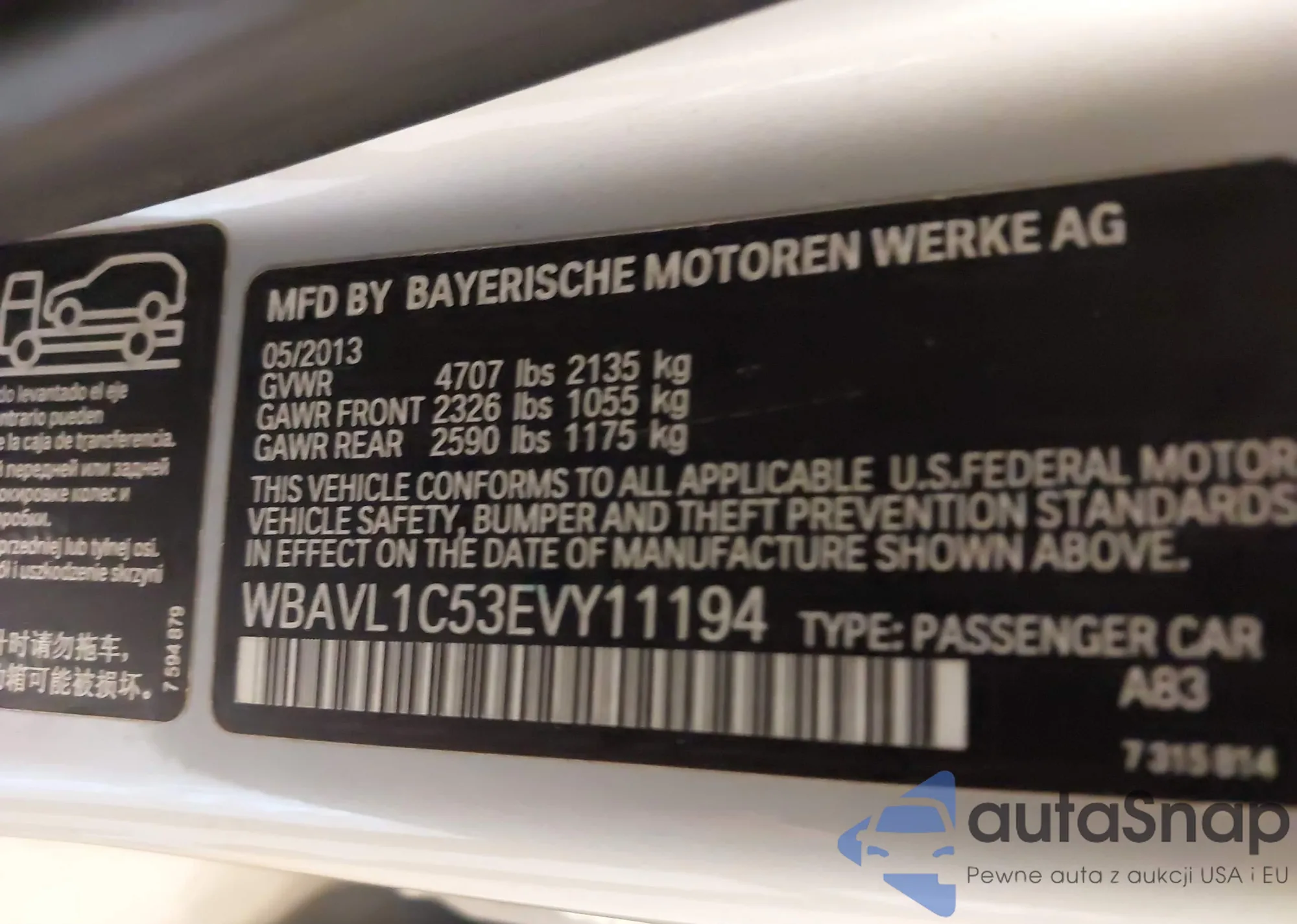 • VIN WBAVL1C53EVY11194