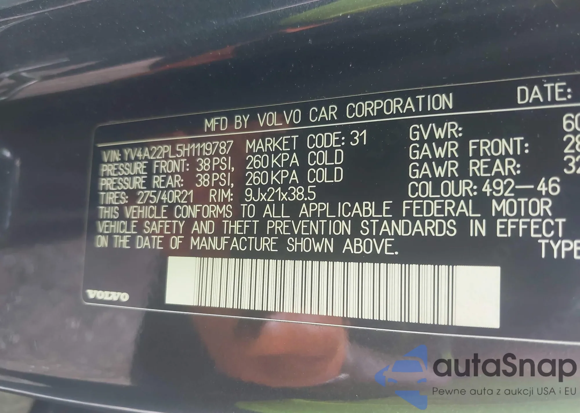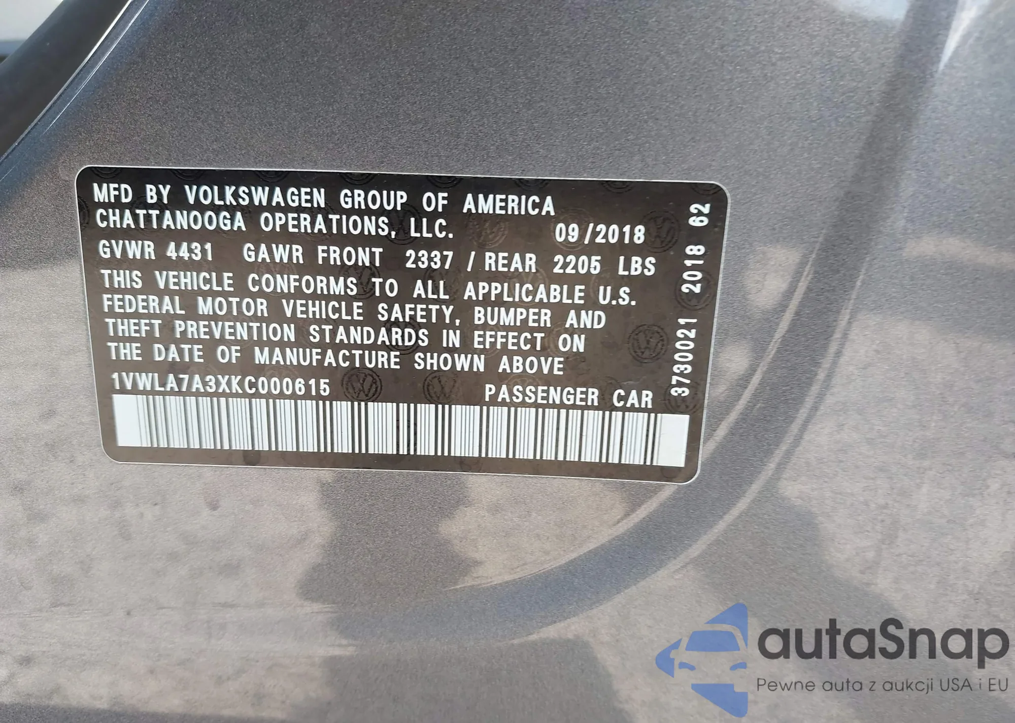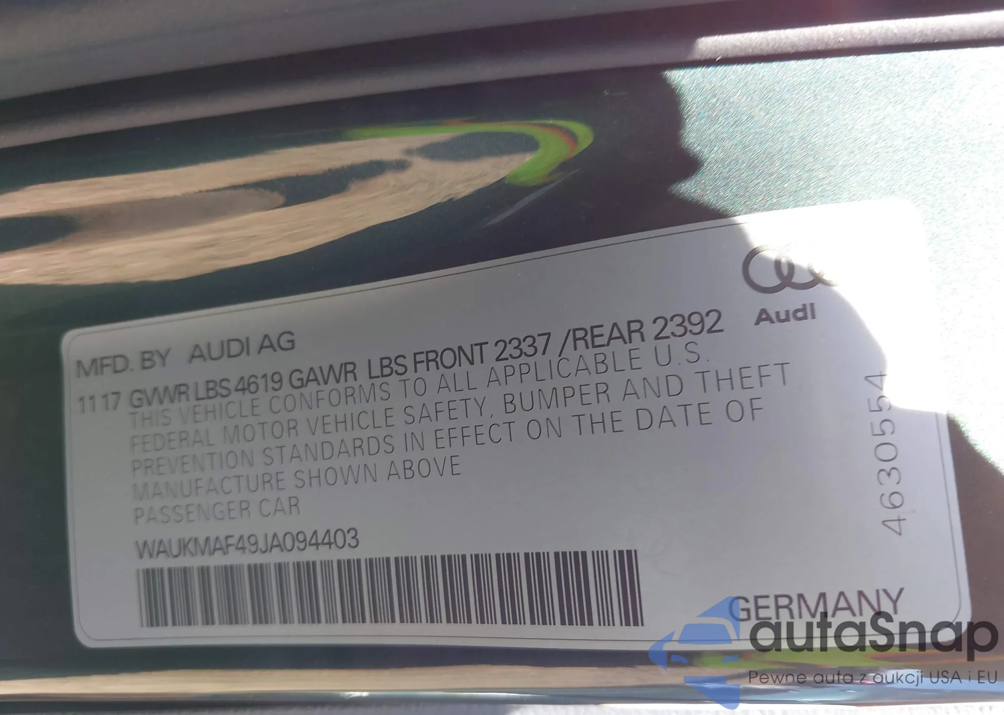 • VIN WAUKMAF49JA094403