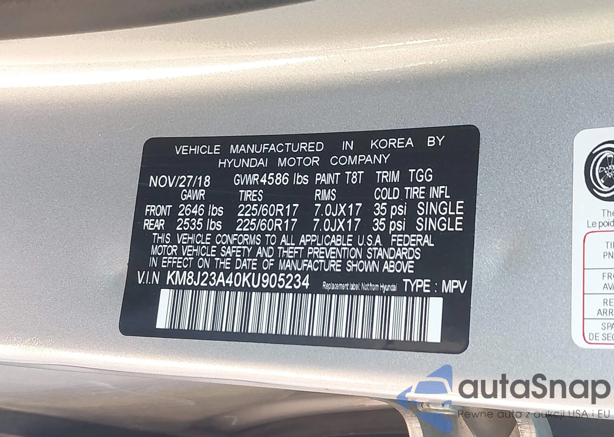 • VIN KM8J23A40KU905234