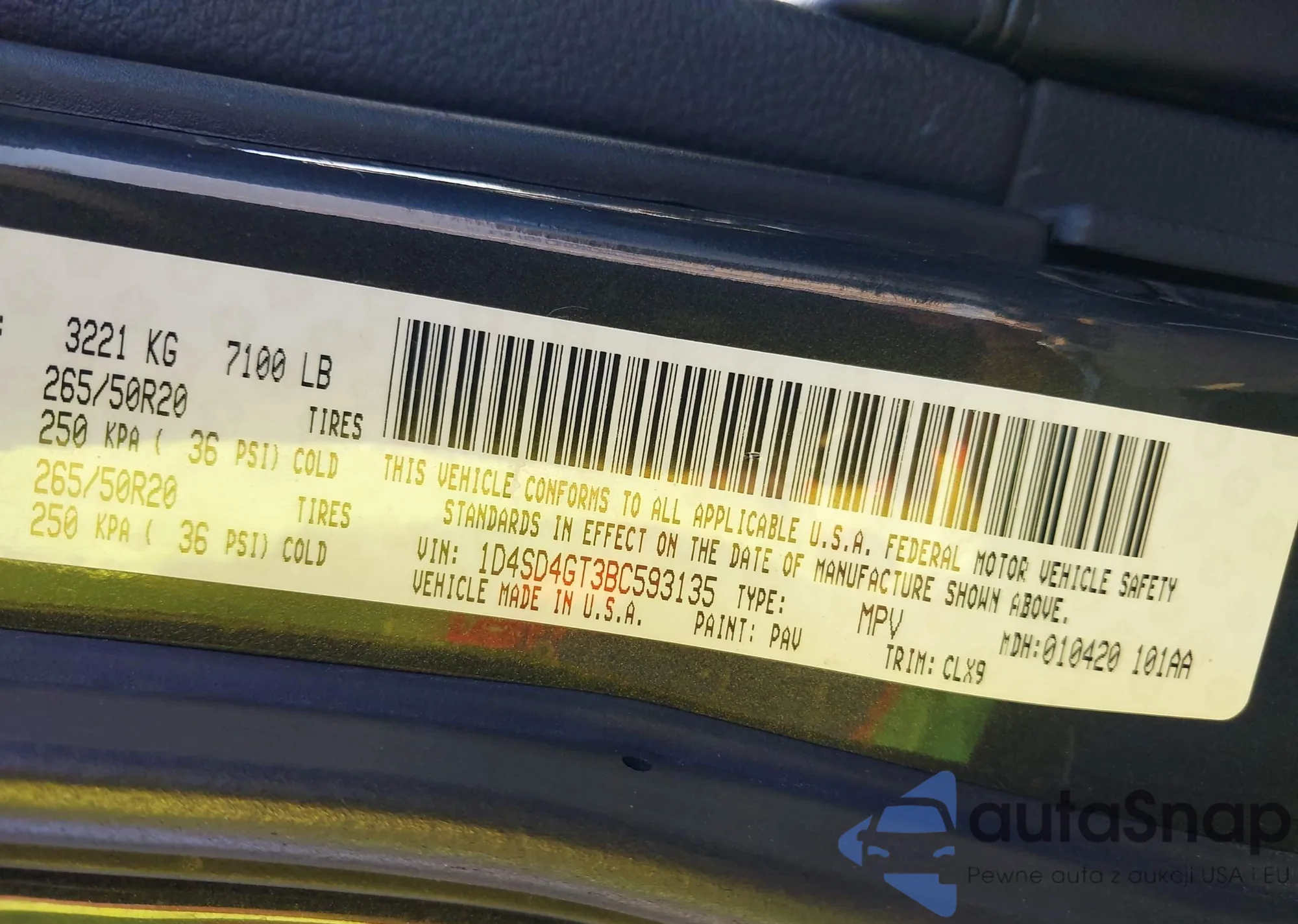LOT: 43362226 VIN: 1D4SD4GT3BC593135