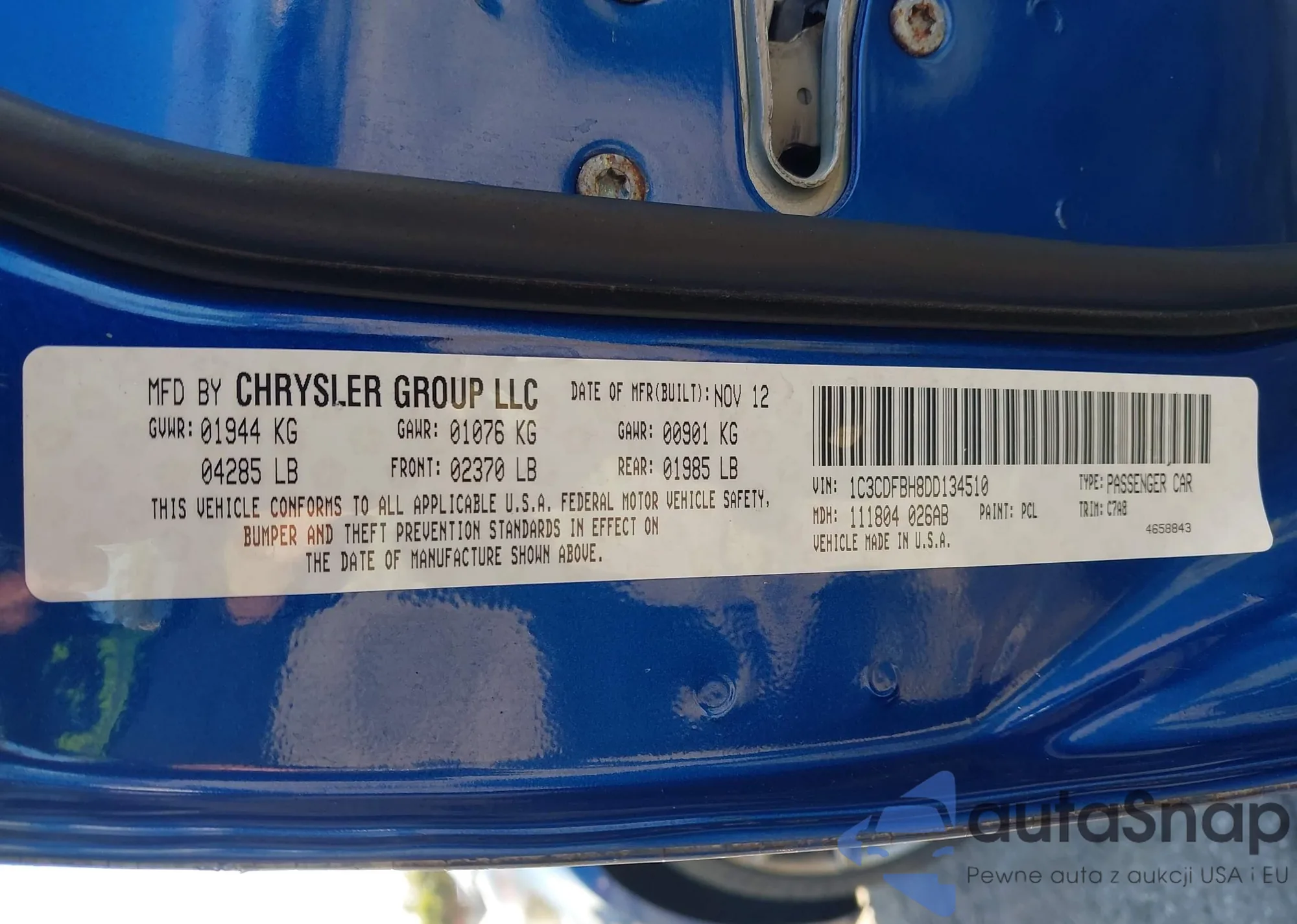 • VIN 1C3CDFBH8DD134510