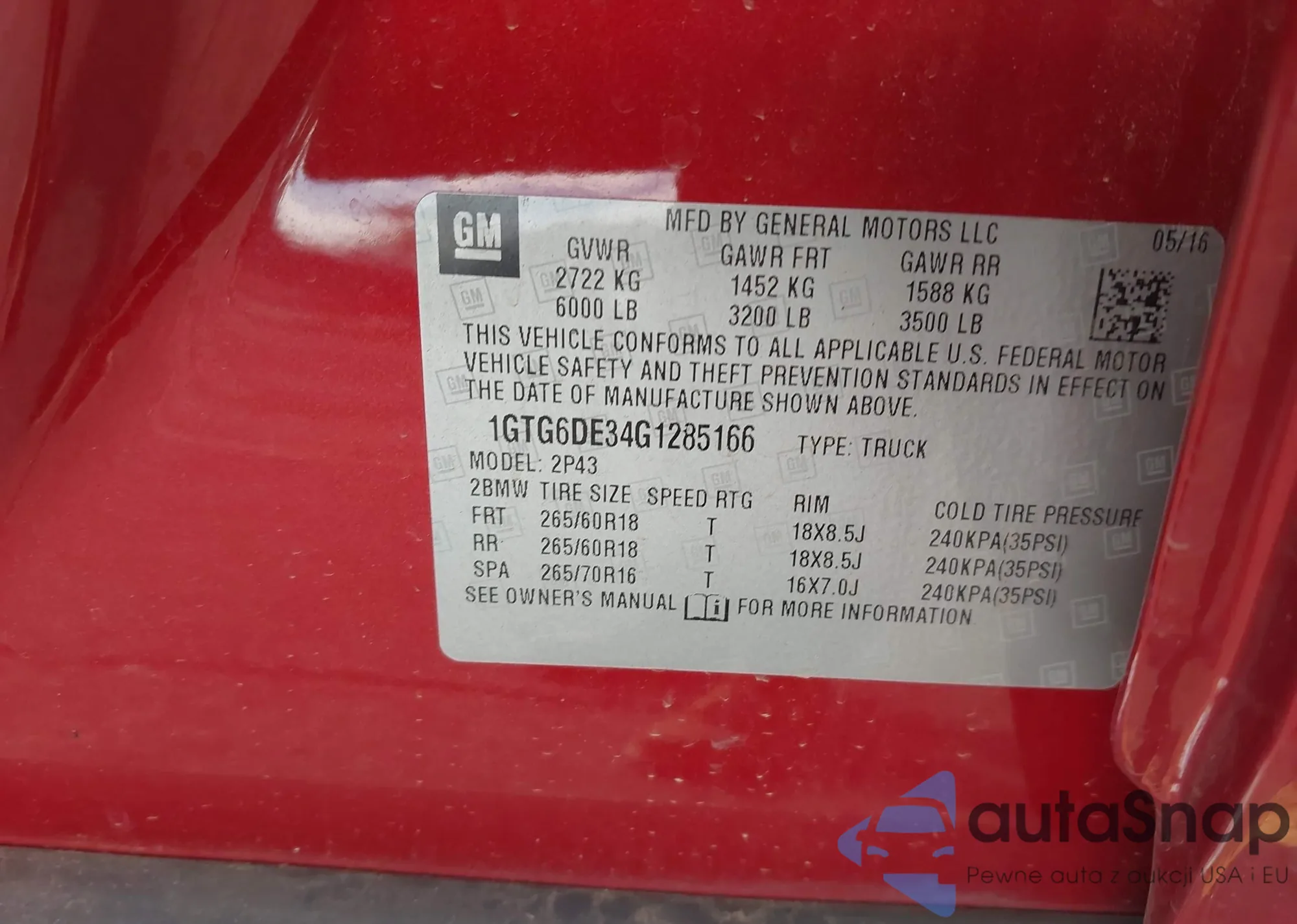 LOT: 43441376 VIN: 1GTG6DE34G1285166