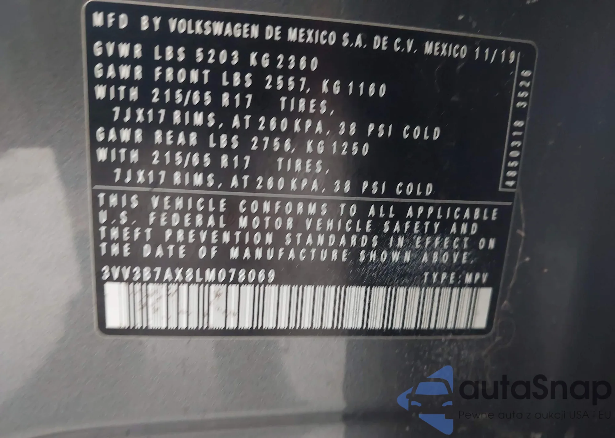 LOT: 43453635 VIN: 3VV3B7AX8LM078069