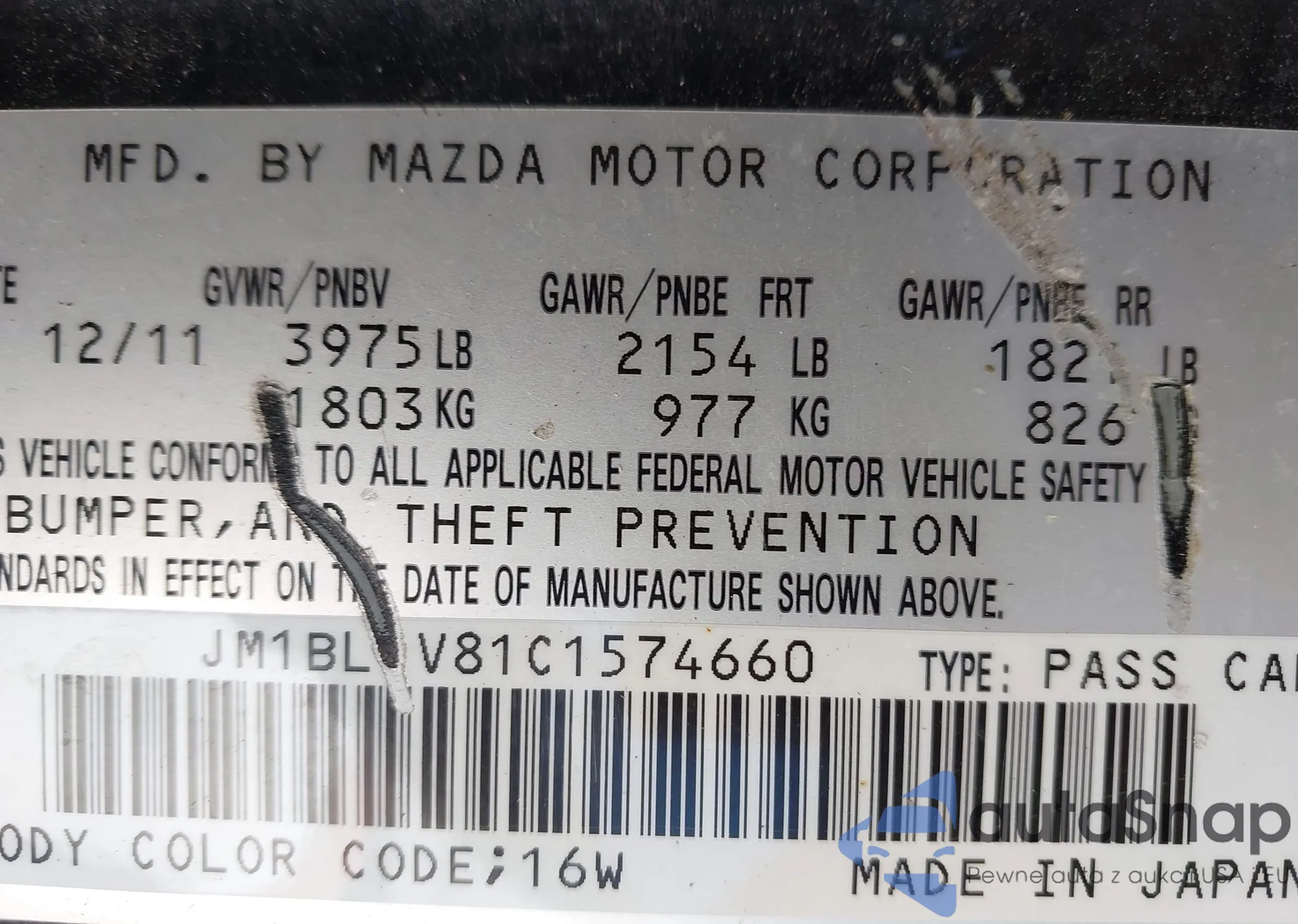 LOT: 43396100 VIN: WBAJA7C59KWW15919